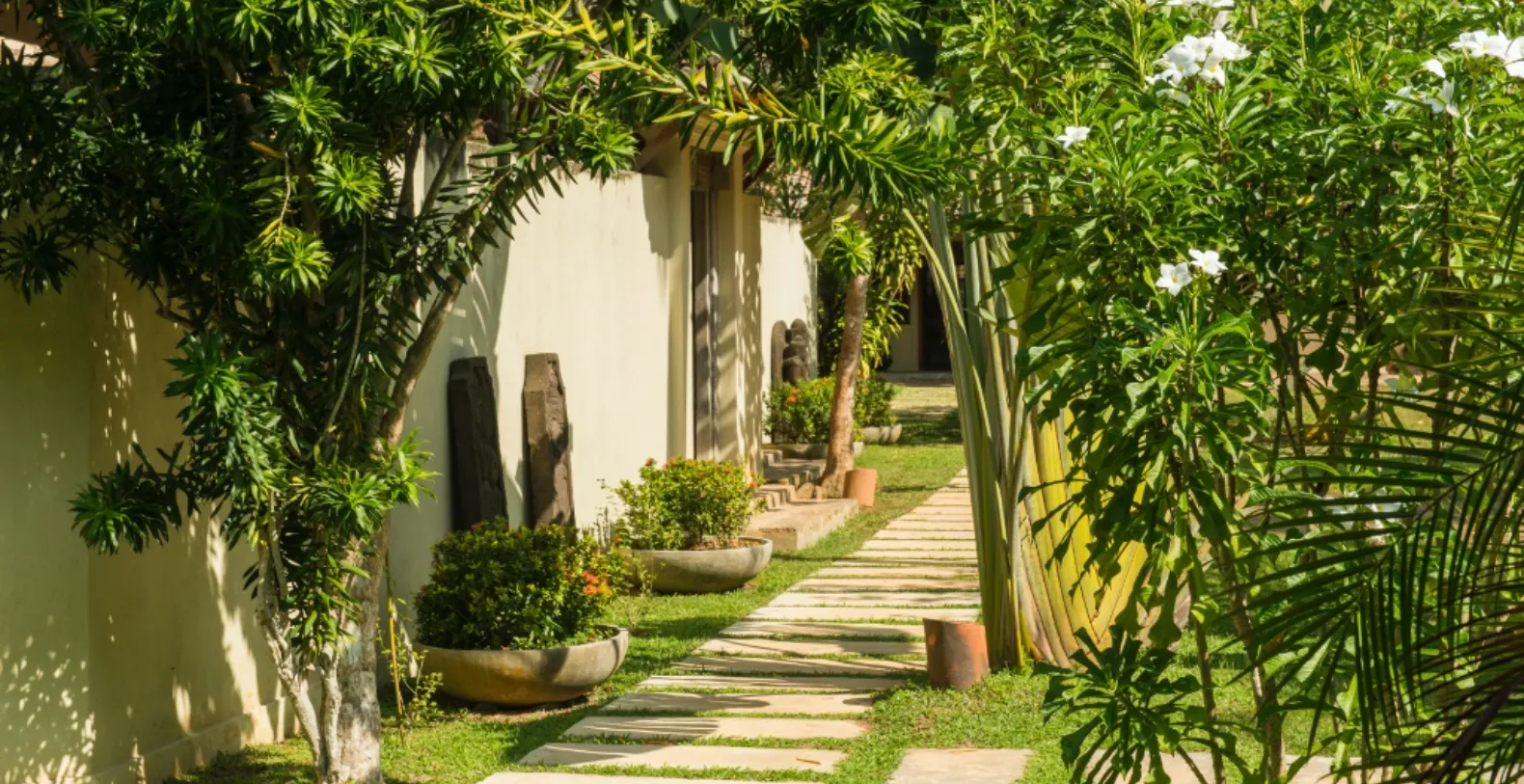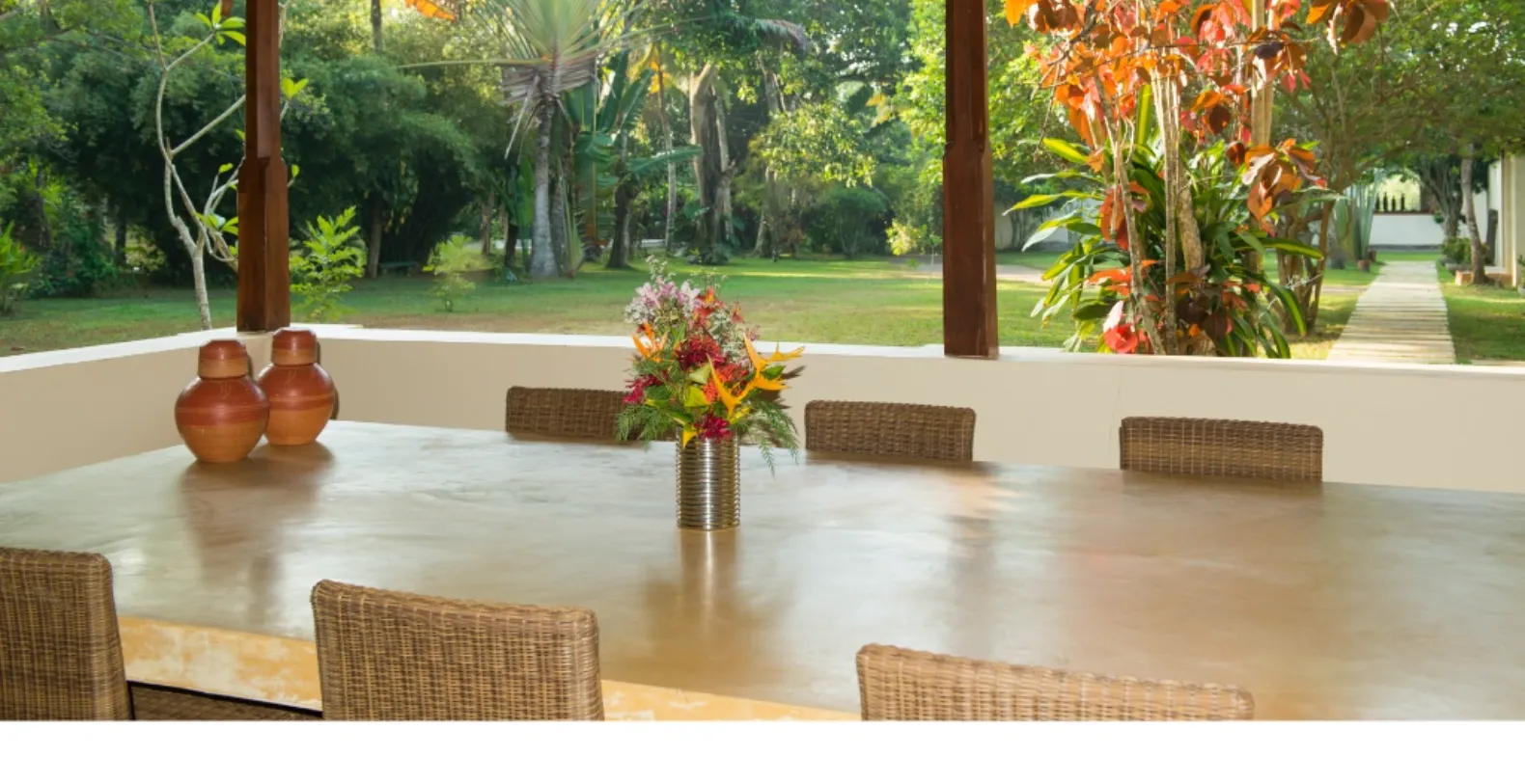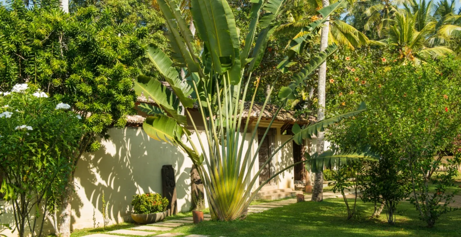 Kumara Villa itself is made up of open plan pavilions. Spacious pavilions are crafted from natural materials and open fully to the surrounding gardens, allowing tropical breezes and the sounds of nature to flow through effortlessly. Surrounded by swaying palms and exotic flowering trees, the villa exudes a sense of peaceful seclusion—yet it's just a short tuk tuk ride from surf-friendly Weligama (5 mins), the bustling harbor of Mirissa (10 mins), and the UNESCO-listed city of Galle (40 mins).