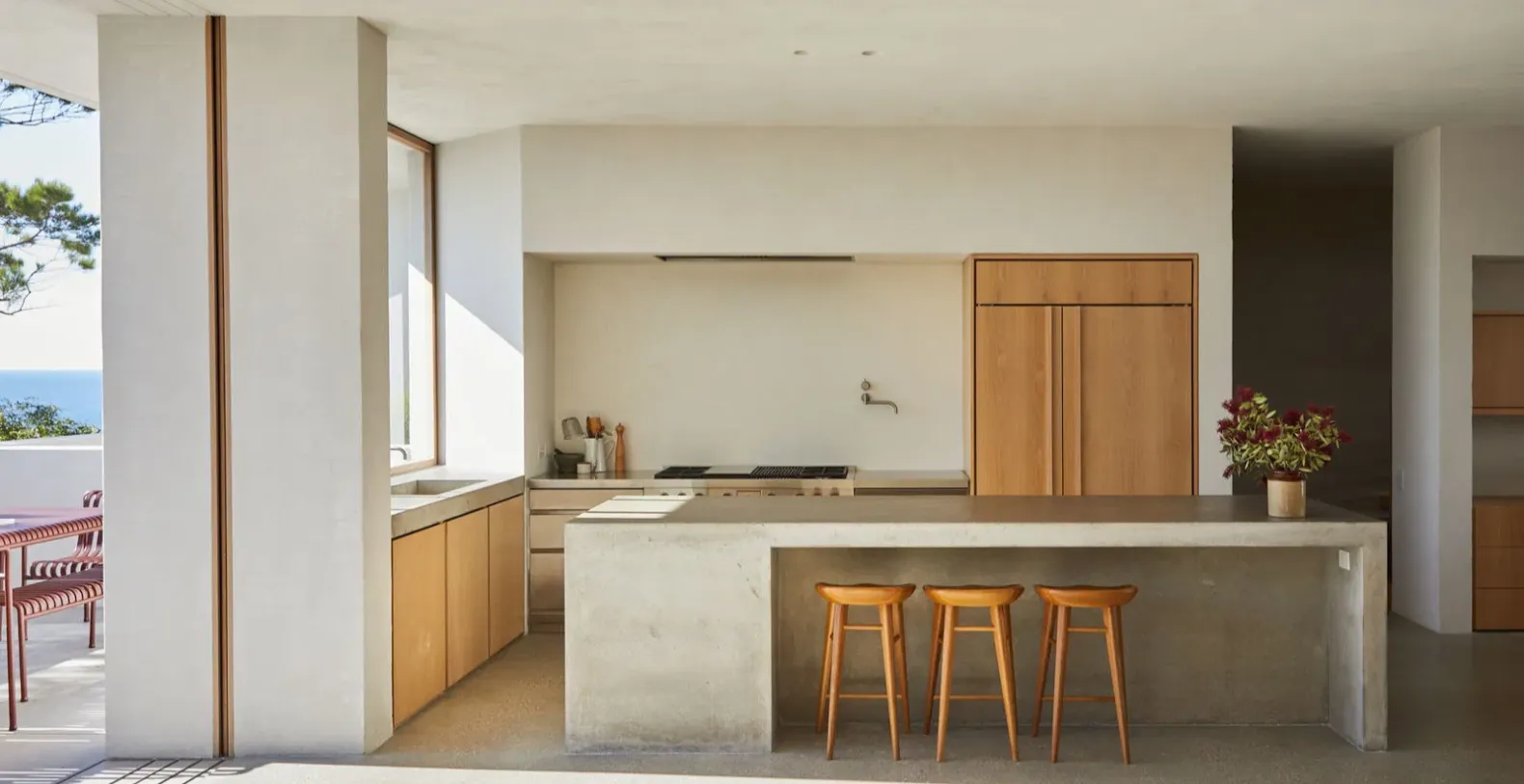 The interiors are thoughtfully curated with a soft, muted palette that contrasts beautifully with the vibrant coastal scenery outside. A seamless transition between indoor and outdoor spaces defines the villa’s design, with terraces on both sides offering distinct experiences.