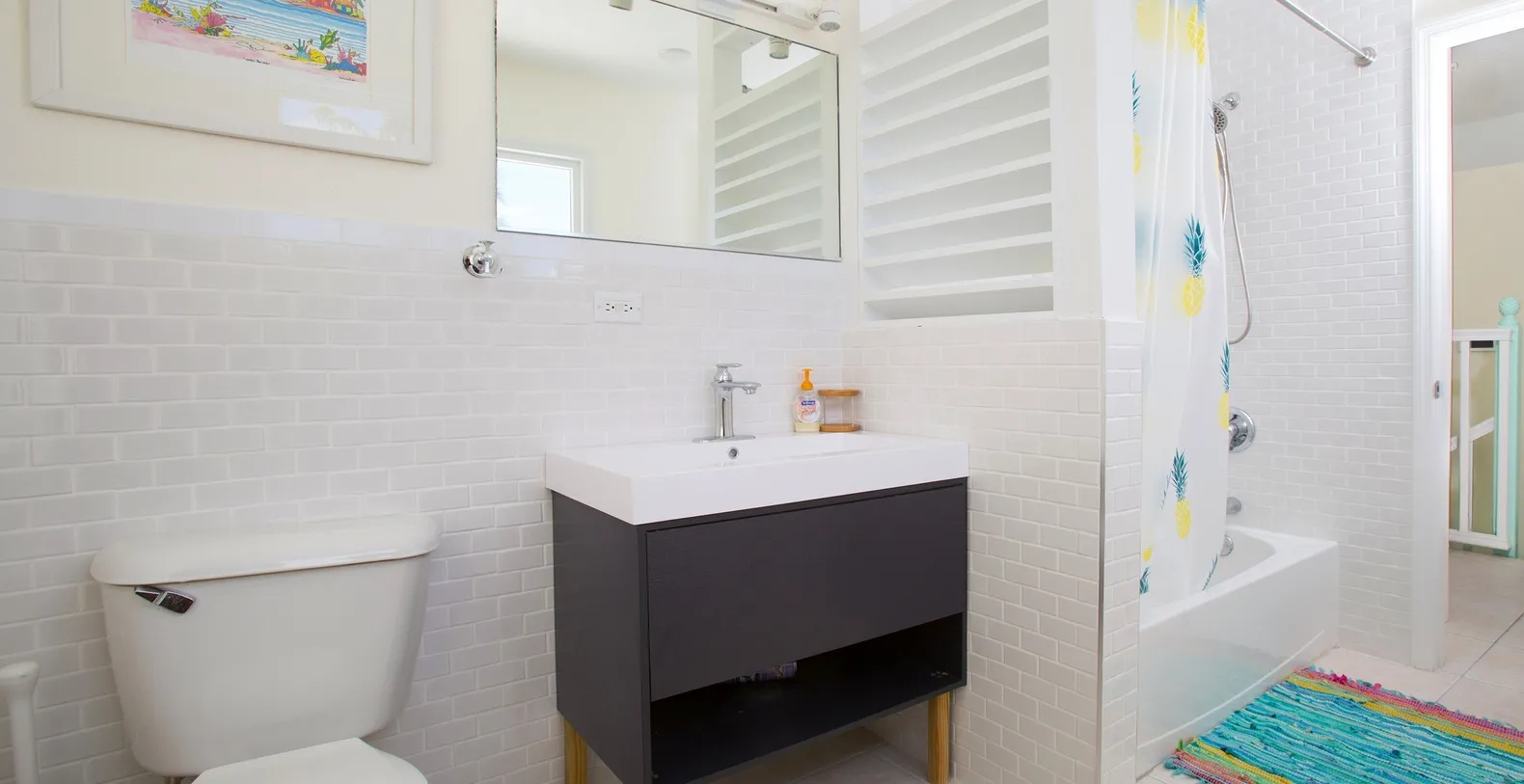 Welcome to Babylon Reef, a crisp oceanfront villa complete with a large sundeck and private pool, situated directly on one of the best shallow snorkeling sites on the entire island. Protected by a coral reef, there are rarely any currents or waves to contend with, so guests can swim, kayak, and snorkel in the shallows all day. The ocean views are stunning the moment you walk through the front door where natural light and scenic ocean views flood the entire living area through the sunroom's retractable glass doors which can be opened to allow a breeze to flow through on days when air conditioning is unnecessary. Cute Caribbean architecture and a modern open-concept design lend to a great island feel throughout with sleeping arrangements accommodating 6 guests total.