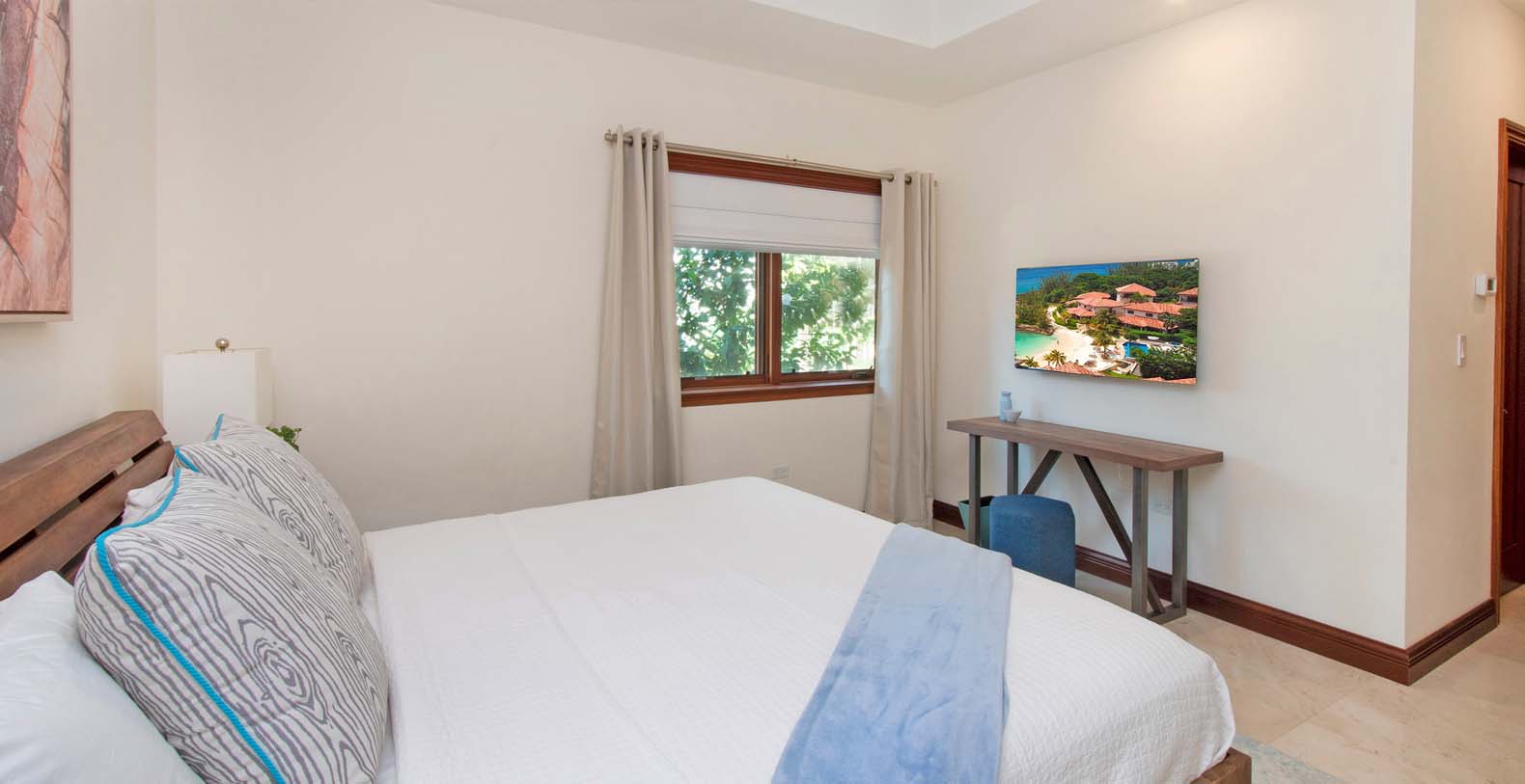 Only 6 of the resort’s 18 villas are available for short-term rental. The majority of the villas are seasonal residences for overseas owners. Exclusive to villa owners and guests, the gated resort's pool, fitness center, and beach are never crowded. Casa Luna #16 is a multi-level private residence with an open-concept design, situating the king bed suites on the upper and lower levels. The living, dining, and kitchen are located on the middle level and open out onto the private covered veranda and backyard entertaining areas.