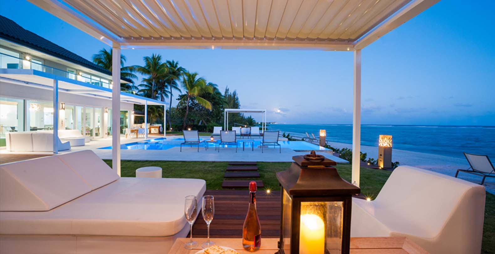 Set on 2.5 acres of pristine beachfront property, The Compound offers unmatched privacy and seclusion, making it an ideal choice for high-profile guests or groups seeking a one-of-a-kind luxury experience. With resort-style amenities and dedicated staff, every detail is tailored to ensure an extraordinary stay. Twenty-nine bedrooms, including multiple oceanfront master suites with breathtaking views A total of 3 private pools, 4 hot tubs, 3 private cabanas, an oceanfront bar and expansive grounds perfect for events and celebrations. Personalized concierge services to coordinate excursions, private chef experiences, and more.