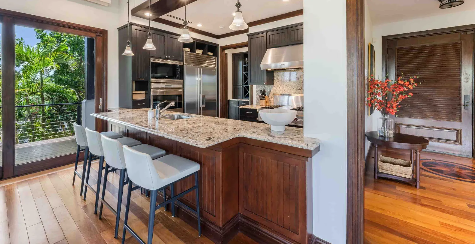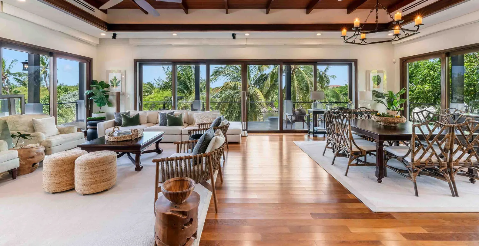 Spanning nearly 9,000 square feet across three thoughtfully designed levels, this five-bedroom luxury villa accommodates up to 12 guests and includes a four-bedroom main residence along with a separate one-bedroom guest cottage. Elevated above calm canal waters and overlooking The Ritz-Carlton Golf Course, the property enjoys sweeping panoramic views and a serene, resort-style atmosphere.