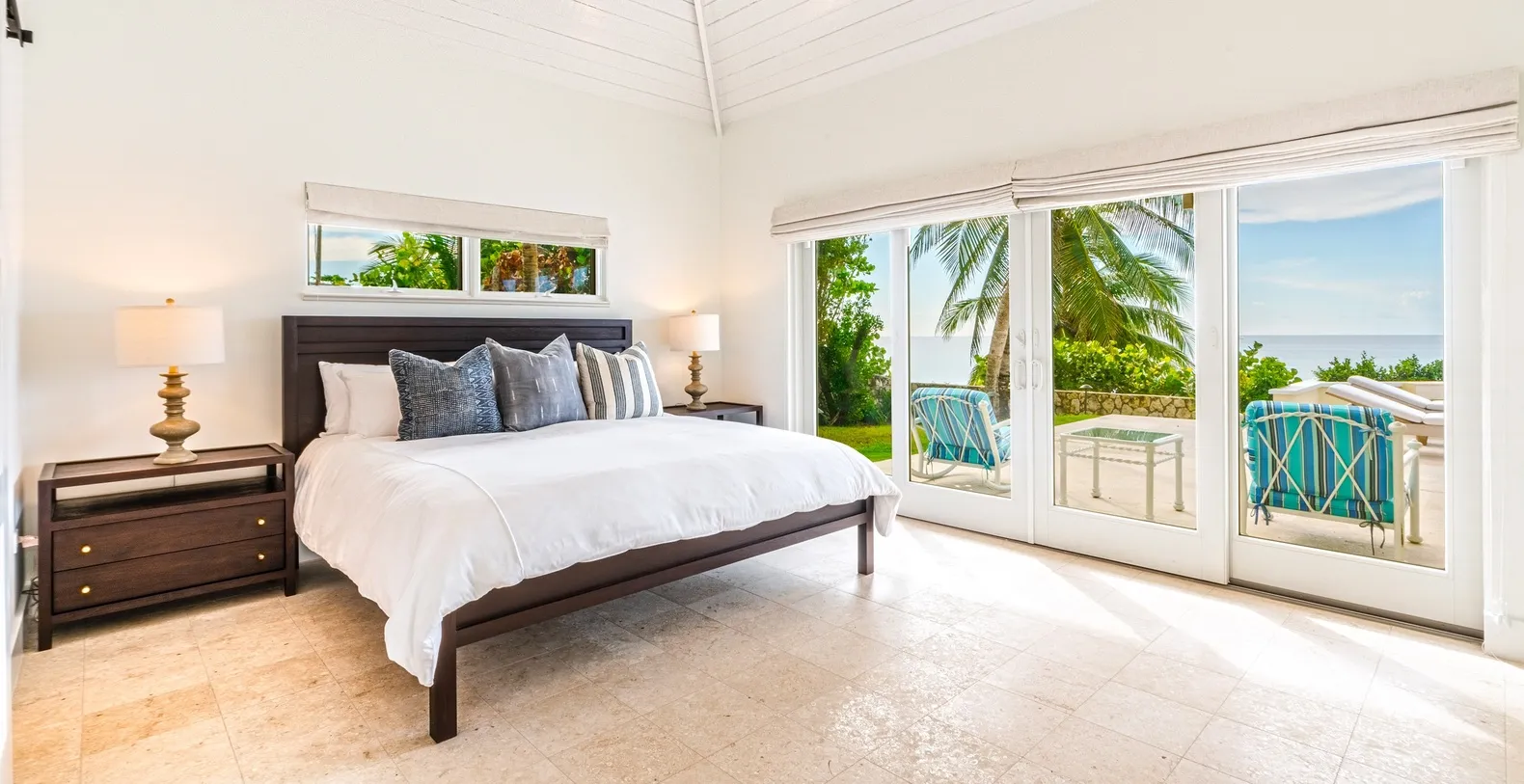 The distinctive oceanview twin and queen suites each feature unique outdoor enclosed rock-walled private showers offering extraordinary bathing experiences under Caribbean skies. Guests will discover abundant room throughout the villa to spread out relax in sophisticated style and enjoy personal space during extended family vacations or group getaways. The East Master Suite showcases king bed stunning oceanfront vistas convenient walk-out access to the pool deck and luxurious ensuite bath featuring double vanity plus spacious walk-in shower while the East Twin Suite offers 2 twin beds that can be expertly converted to king bed configuration upon request alongside ocean views ensuite bathroom with shower and tub combination walk-out access to a private outdoor shower and dedicated footpath leading to the pool deck. The West Master Suite presents king bed breathtaking oceanfront panoramas direct walk-out pool deck access and elegant ensuite bath with double vanity and generous walk-in shower while the versatile West Queen Suite accommodates families with 2 queen beds scenic ocean vistas ensuite bathroom featuring walk-in shower walk-out access to private outdoor shower and convenient footpath to pool deck. The villa is licensed to sleep 8 adults maximum with capacity for 10 guests total ensuring comfortable accommodations without overcrowding.