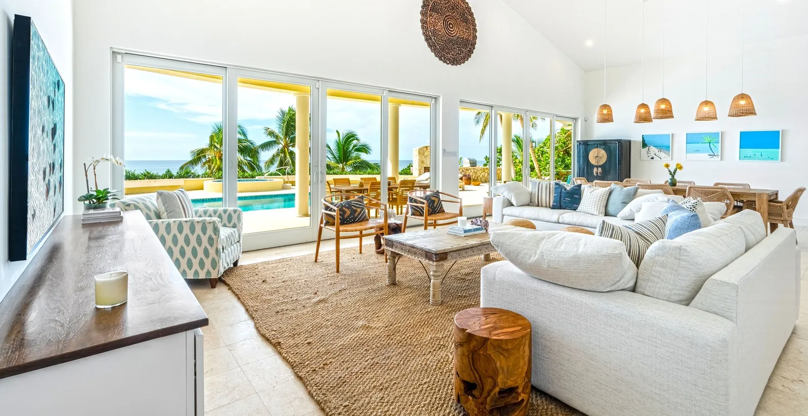 Guests of all ages will thoroughly enjoy the spectacular private swimming pool and relaxing spa where complimentary spa heating is provided during winter months November 15 through April 15 with optional heating available for just $25 per day during remaining months ensuring year-round comfort. Sun worshippers will discover abundant chaise lounges plus a luxurious sunbed strategically positioned for soaking up Caribbean sunshine while towering palm trees within the expansive pool deck provide welcome natural shade during peak afternoon hours. Inside Turtle Beach seamlessly blends modern design elements with generous spacious gathering areas that flow effortlessly through an impressive wall of sliding glass doors into outdoor living spaces creating the ultimate indoor-outdoor Caribbean lifestyle. The gourmet kitchen flows naturally into the great room equipped with premium modern appliances and convenient breakfast bar seating while gorgeous ocean views can be enjoyed throughout the entire first floor creating constant visual connection with turquoise waters. Each of the four bedroom suites boasts elevated vaulted ceilings and scenic ocean panoramas while spacious modern ensuite bathrooms provide ultimate comfort and privacy for all guests.