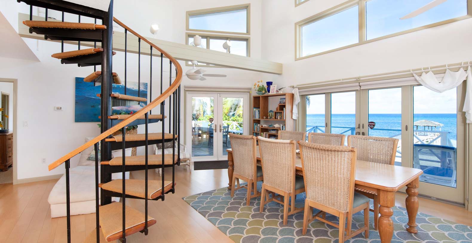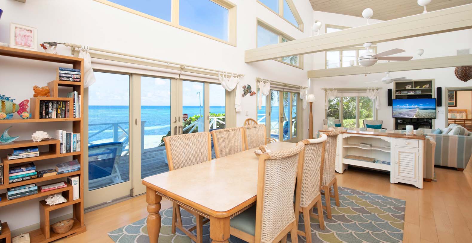 Welcome to Castaway Cove Vacation Rental, a breathtaking oceanfront villa situated on Grand Cayman’s scenic North Side. This bright and airy two-story beach house offers unparalleled views from nearly every room, complete with vaulted ceilings and a thoughtfully designed open concept.