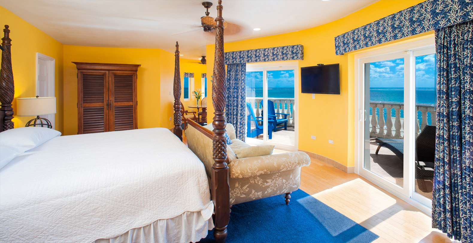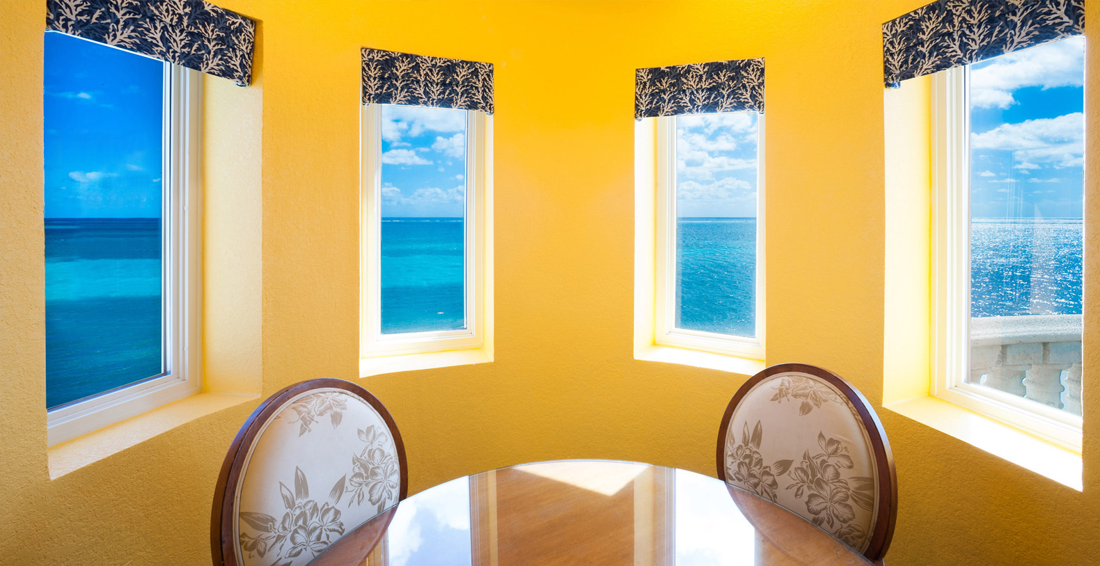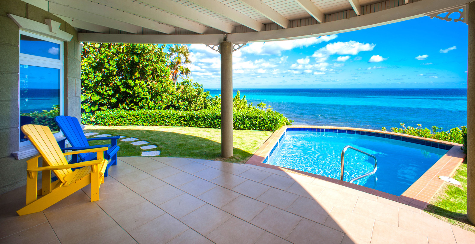 This grand estate is not only one of the largest rental villas on the entire island it also is a notable landmark. Virtually anyone on the island will know of the Castle in the East End. While we are neighbors to the Wreck of the 10 Sails Park and the police constable's residence, this property enjoys no residential neighbors to the north or the south for well over 500 feet. With the gate shut in the evenings, guests enjoy their privacy.