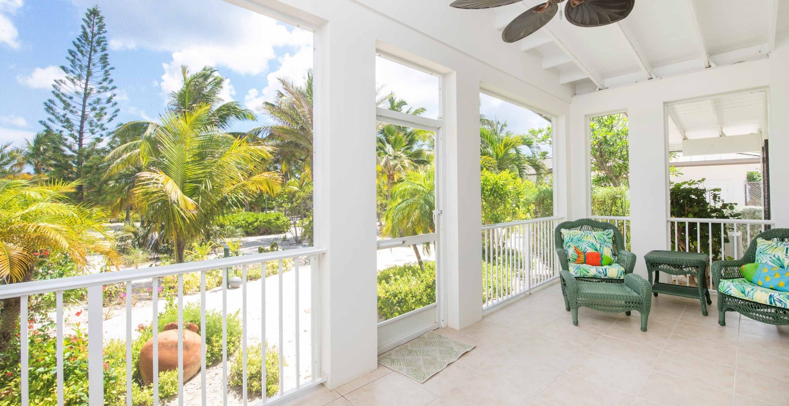 French doors and screened porches, on both the front and rear of the home, provide great cross-ventilation in the winter when air conditioning is seldom necessary. Air conditioning units cool the bedrooms and bathrooms only while ceiling fans cool the living areas. You can leave the cottage open from both the front and rear screen porches with ceiling fans running to comfortably cool the home.