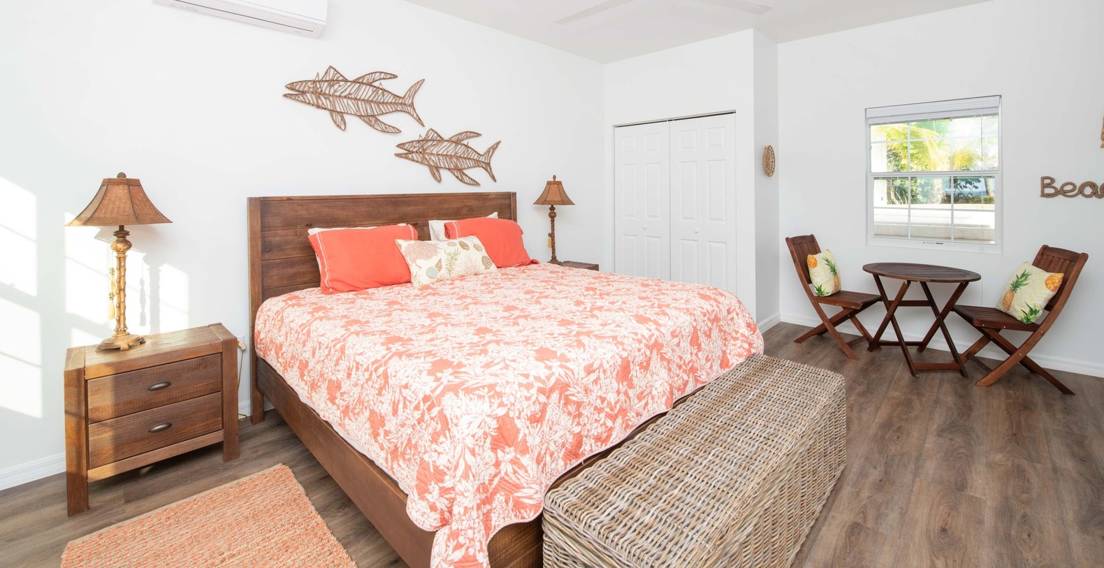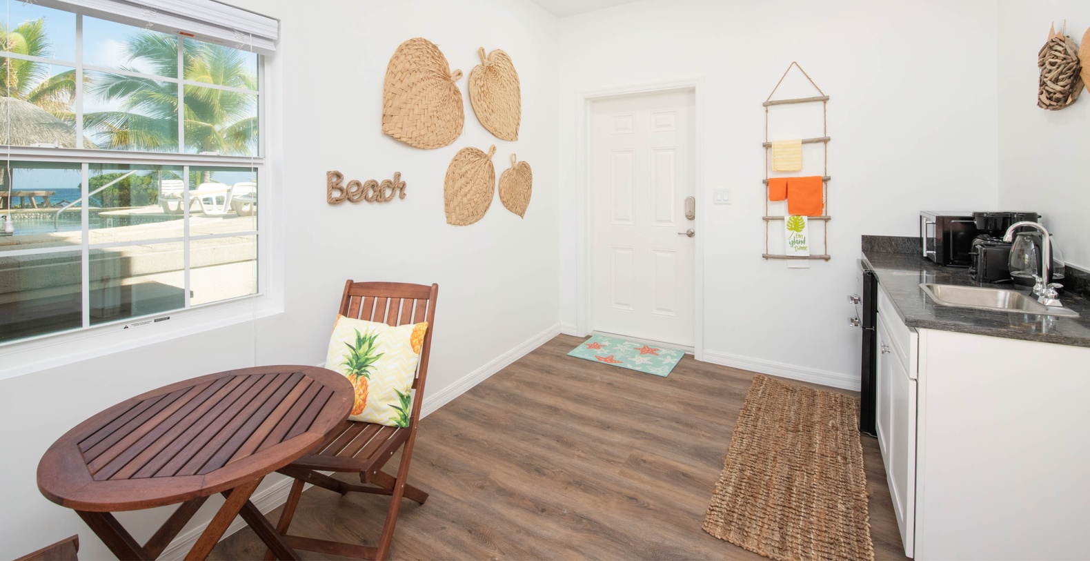 Conch'ed Out's key features include private pool and patio for swimming, tanning, and relaxing. The pool deck comes furnished with sun loungers, charcoal grill, and tiki picnic table. The new Cottage Suite includes kitchenette, countertop appliances, king bed, and ensuite bathroom. The full-width screened porch is furnished with cushioned patio seating. The furnished living area provides cushioned seating and large television. The full kitchen offers modern appliances and breakfast bar seating. An indoor dining table seats four with tropical views. Two single kayaks are provided complimentary during your stay. Infants under 2 years old sleeping in cribs do not count towards occupancy. Conch'd Out is an excellent island home for small families, traveling couples, or digital nomads.