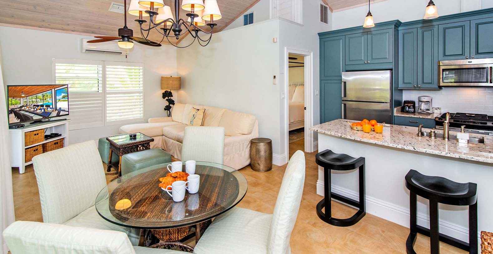 Just a leisurely five-minute stroll down the beach will bring you to the famous Rum Point Club, where you can indulge in watersports, beach volleyball, dining, and more. Step directly off the villa's pool deck and into the pristine white sands for easy barefoot water entry, ideal for launching kayaks or paddleboards. The waters right in front of the villa are perfect for swimming and casual relaxation.