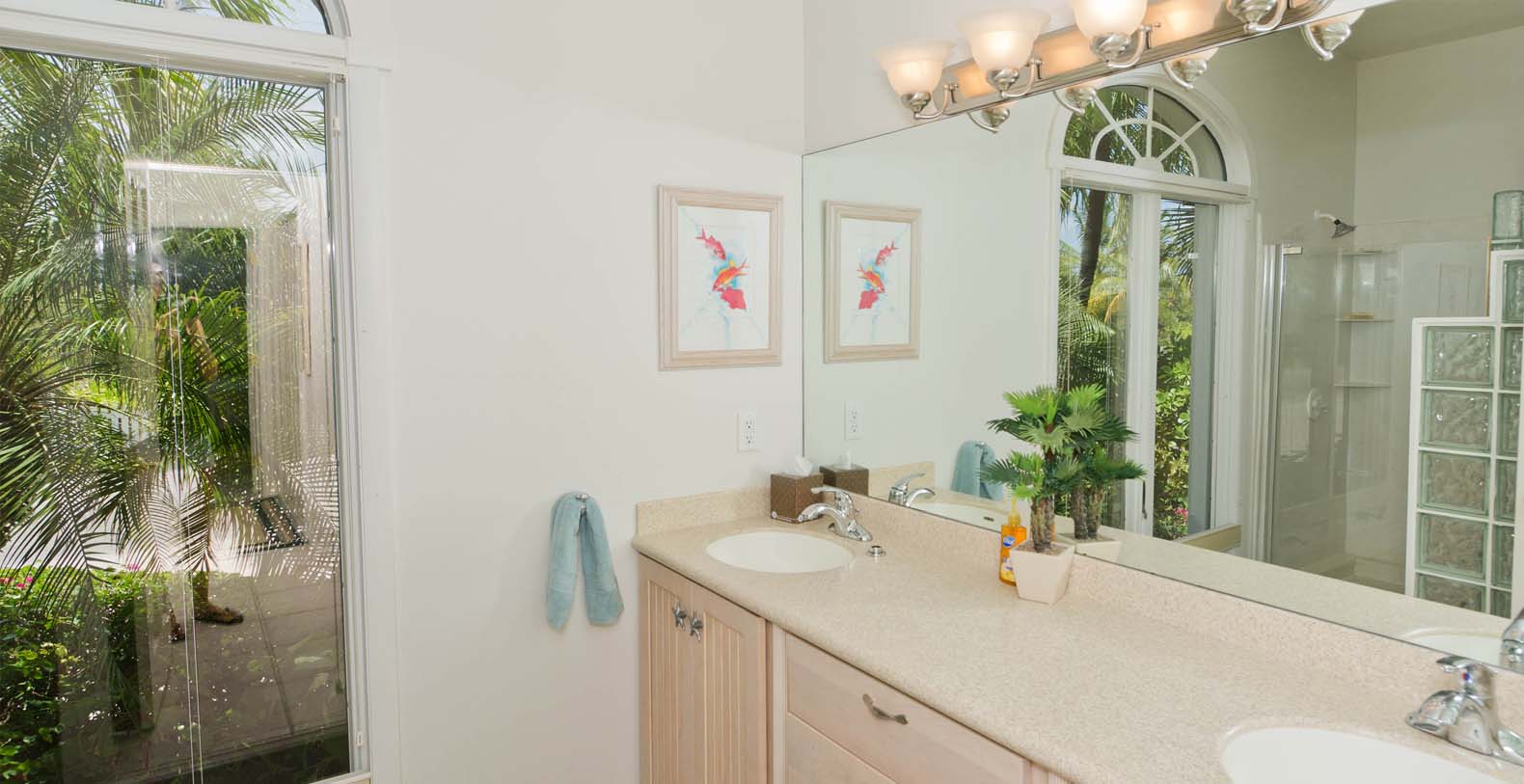 Kailypso’s three bedrooms include a master suite with private bathroom and two additional bedrooms with a shared bath. The villa sleeps 6 adults max, 8 guests in total