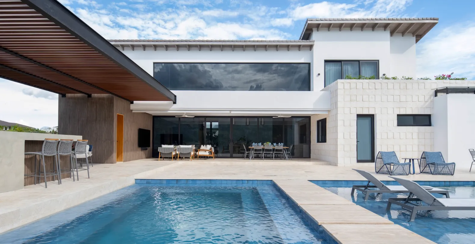 Casa Bosque is a contemporary luxury vacation rental in Casa de Campo, Dominican Republic. Newly built and thoughtfully curated, this five-bedroom villa blends clean architectural lines with natural stone.