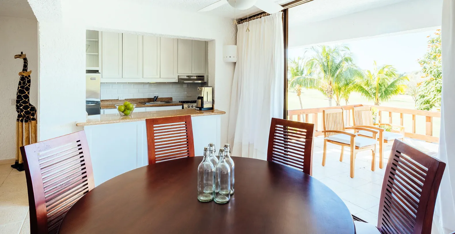 Golf Villa 8 is three level rental and is a home to three bedrooms, accommodating up to 6 guests. The masters suite includes a king-size bed and private en-suite bath, while two additional guest rooms—one with a queen bed and the other with two full beds—open onto a serene, covered terrace with beautiful views. The villa is fully air-conditioned and Internet-enabled and feature spacious living and dining areas along with fully equipped kitchen. Spacious balcony provides the ideal spot for outdoor relaxation and contemplation.