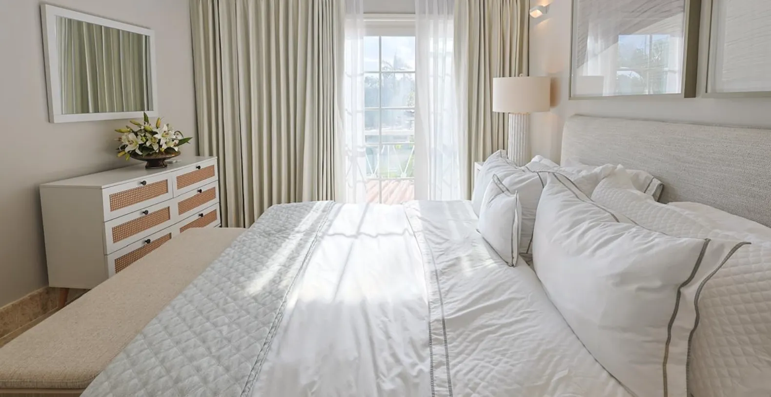 La Darsena features three well-appointed bedrooms, each designed as a serene retreat. Soft neutral hues, natural finishes, and carefully selected furnishings create restful spaces that encourage deep relaxation. The bedrooms are bright and tranquil, offering a peaceful retreat. Outdoors, the covered terrace provides a private setting to enjoy the gentle marina ambiance, morning coffee, or sunset moments in complete tranquility. With direct access to the marina, guests can fully embrace the waterfront lifestyle. The property also includes two covered parking spaces, adding an extra layer of convenience for those exploring the resort by golf cart or car. Housekeeping service is included, ensuring a consistently comfortable and carefree stay.