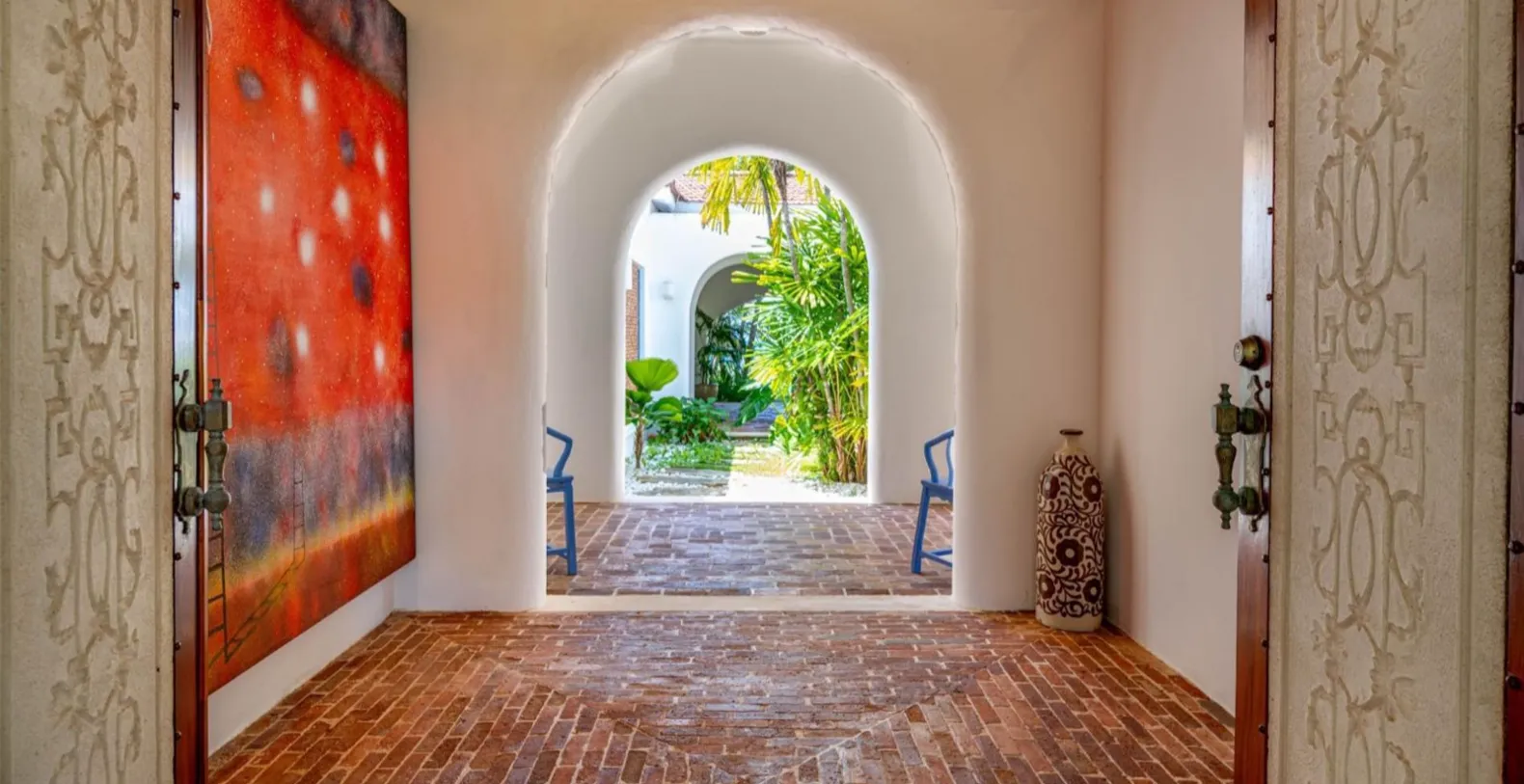 Designed with open-air living in mind, the villa features vaulted ceilings, arched walkways, terracotta floors, and breezy indoor-outdoor transitions that showcase panoramic sea views from nearly every corner. Contemporary furnishings blend seamlessly with custom wood finishes, handcrafted décor, and subtle Caribbean accents.