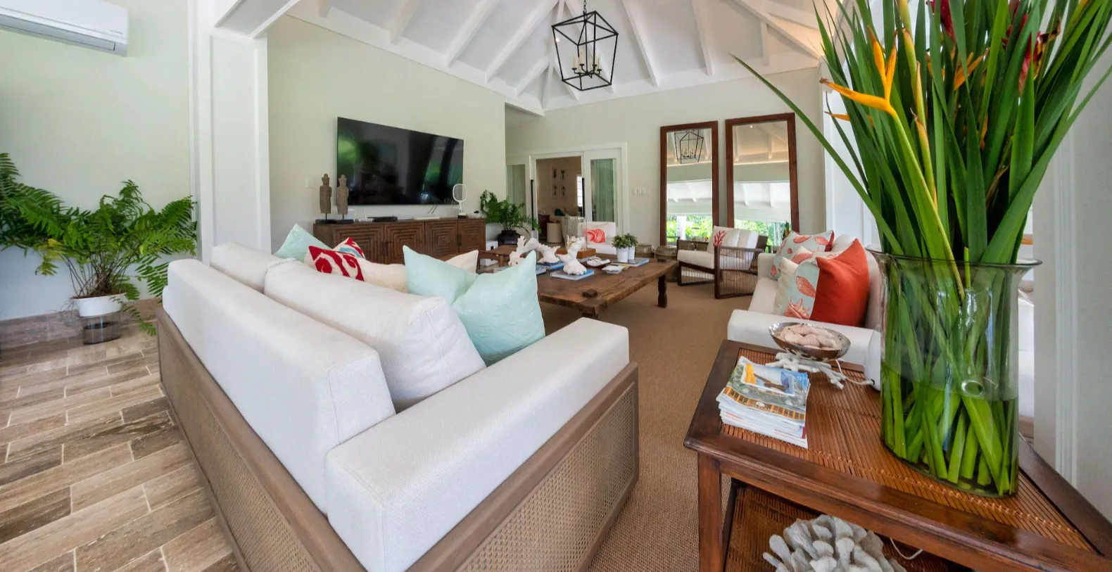 The villa’s fully equipped modern kitchen makes meal preparation easy, whether cooking at home or assisting your private cook with dinner plans. A dedicated laundry room adds everyday convenience, while premium appliances and thoughtful amenities elevate your stay from start to finish. A private pool, sun loungers, outdoor seating, and panoramic golf course views create a peaceful tropical retreat where you can unwind, entertain, or simply soak up the Caribbean sunshine.