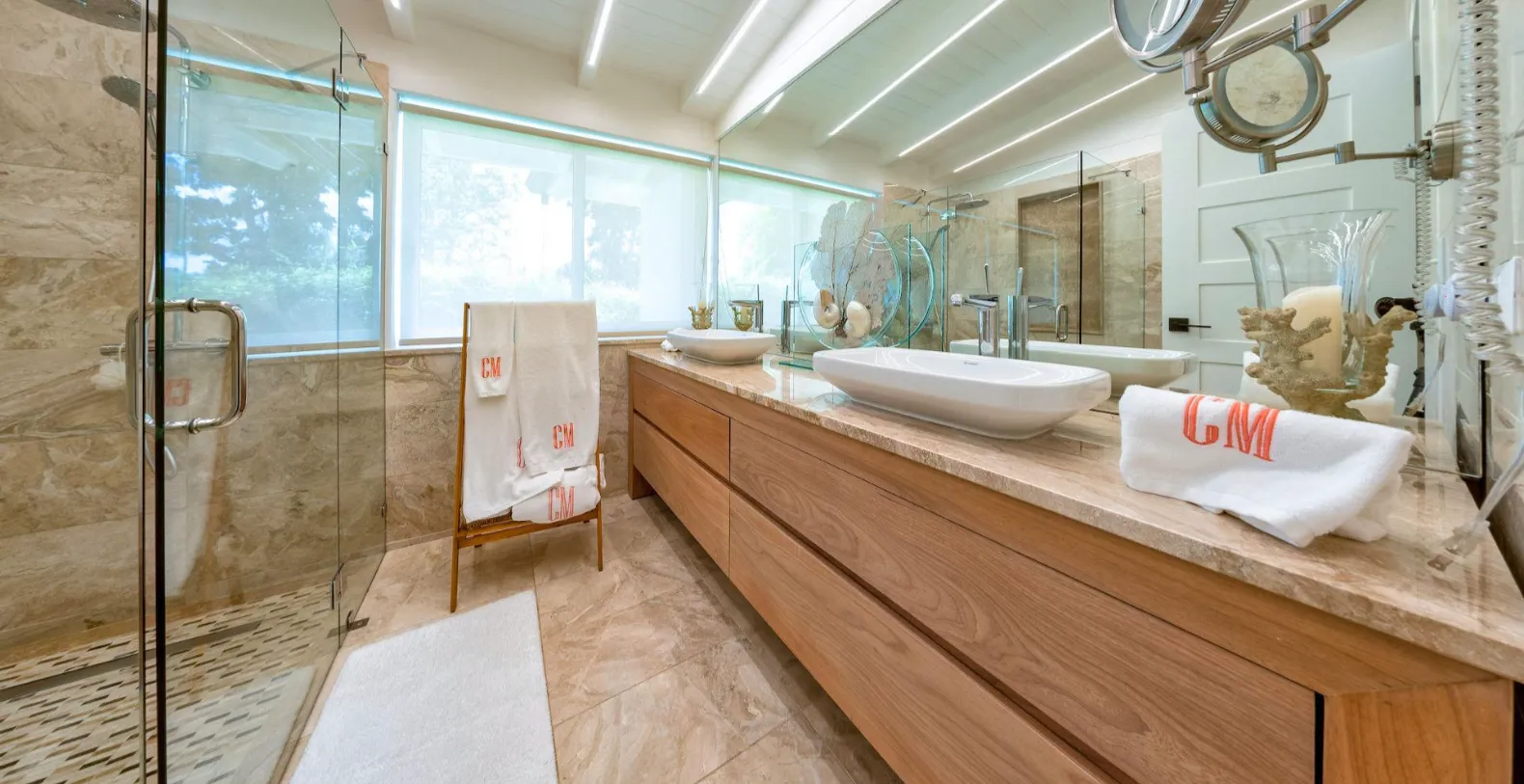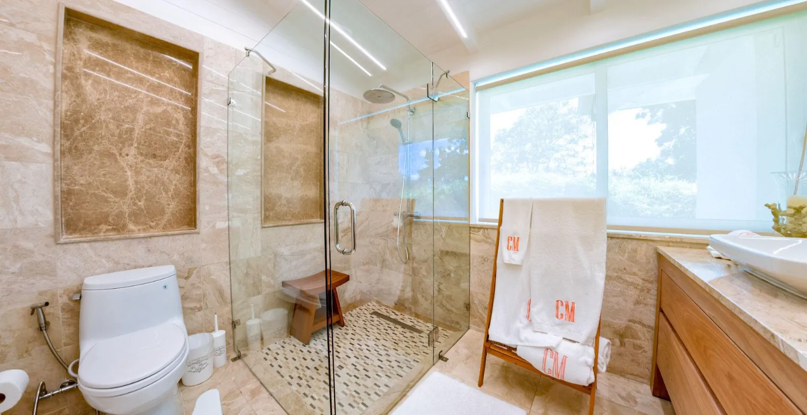 Villa Uchi offers three stylish and comfortable bedrooms: bedroom 1 feature king size bed, luxury ensuite bathroom and all necessary amenities, bedrooms 2 feature queen size bed, ensuite bathroom and bedroom 3 is ready to accommodate guests with two queen size beds. Bedrooms are air-conditioned and provide all the comforts guests seek.