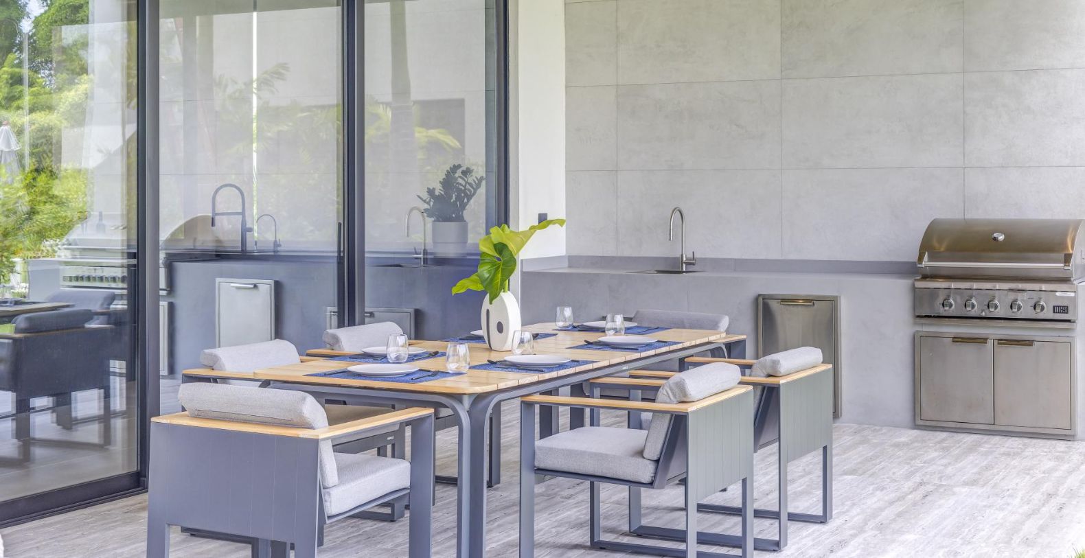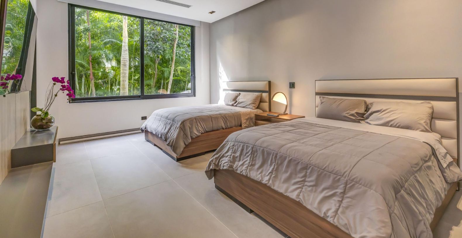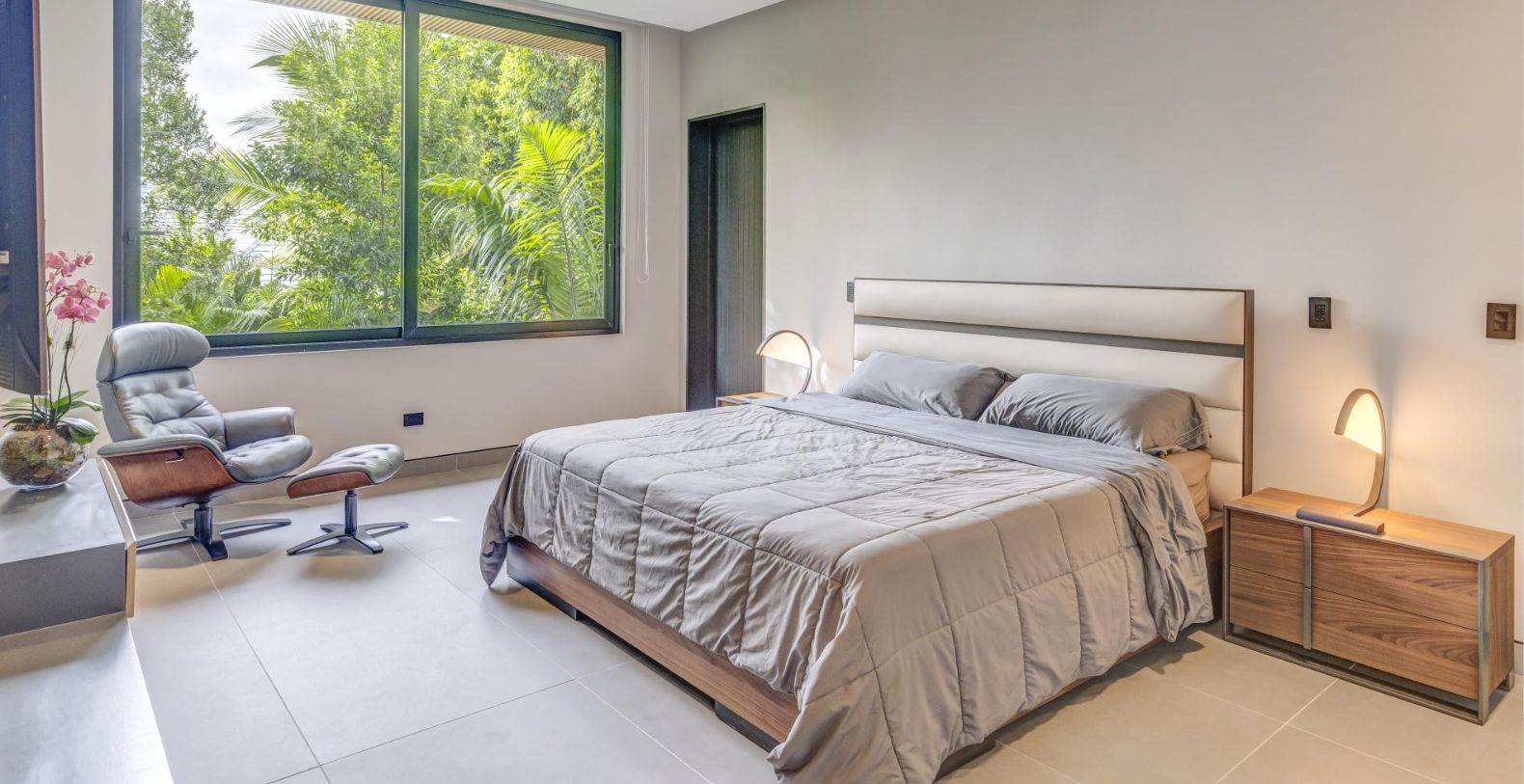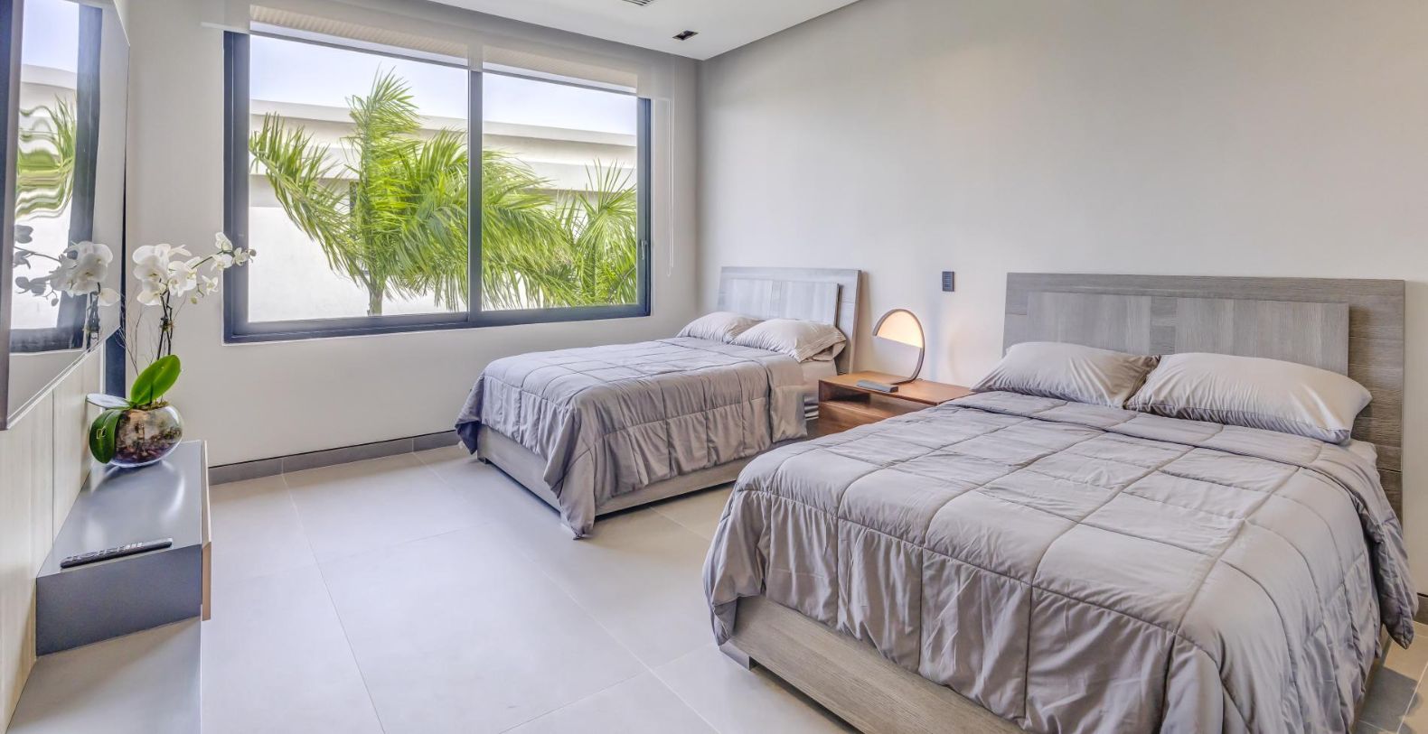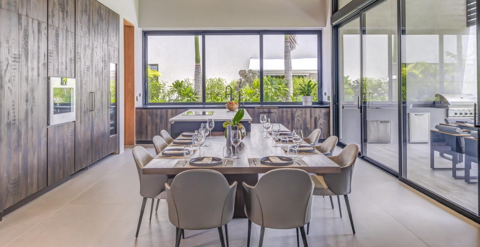 The interior of Hacienda 14 is as impressive as the outdoor area, featuring modern furnishings, tasteful decor, and high-end finishes. The main living area is an open-plan space with floor-to-ceiling windows that allow natural light to flood the room. It includes a comfortable sitting area, perfect for relaxing after a day of exploration, and a sleek dining area for enjoying meals together. The kitchen at Hacienda 14 is a modern culinary haven, equipped with top-of-the-line appliances and sleek finishes. It features an open layout that flows seamlessly into the dining and living areas, making it perfect for both casual meals and elegant gatherings.