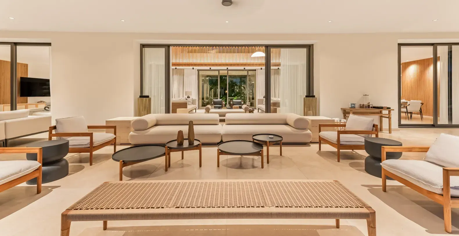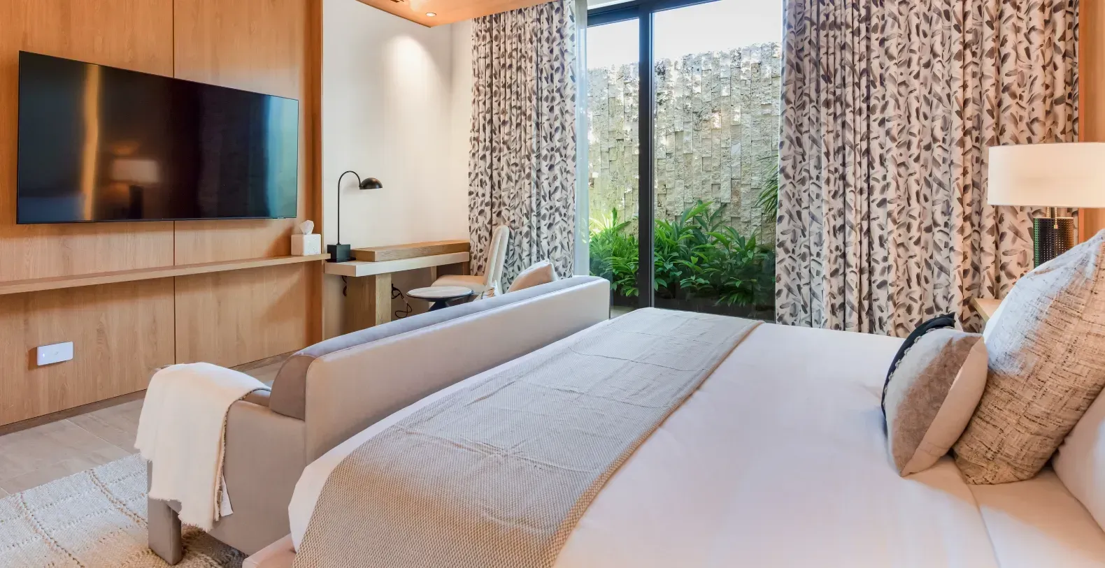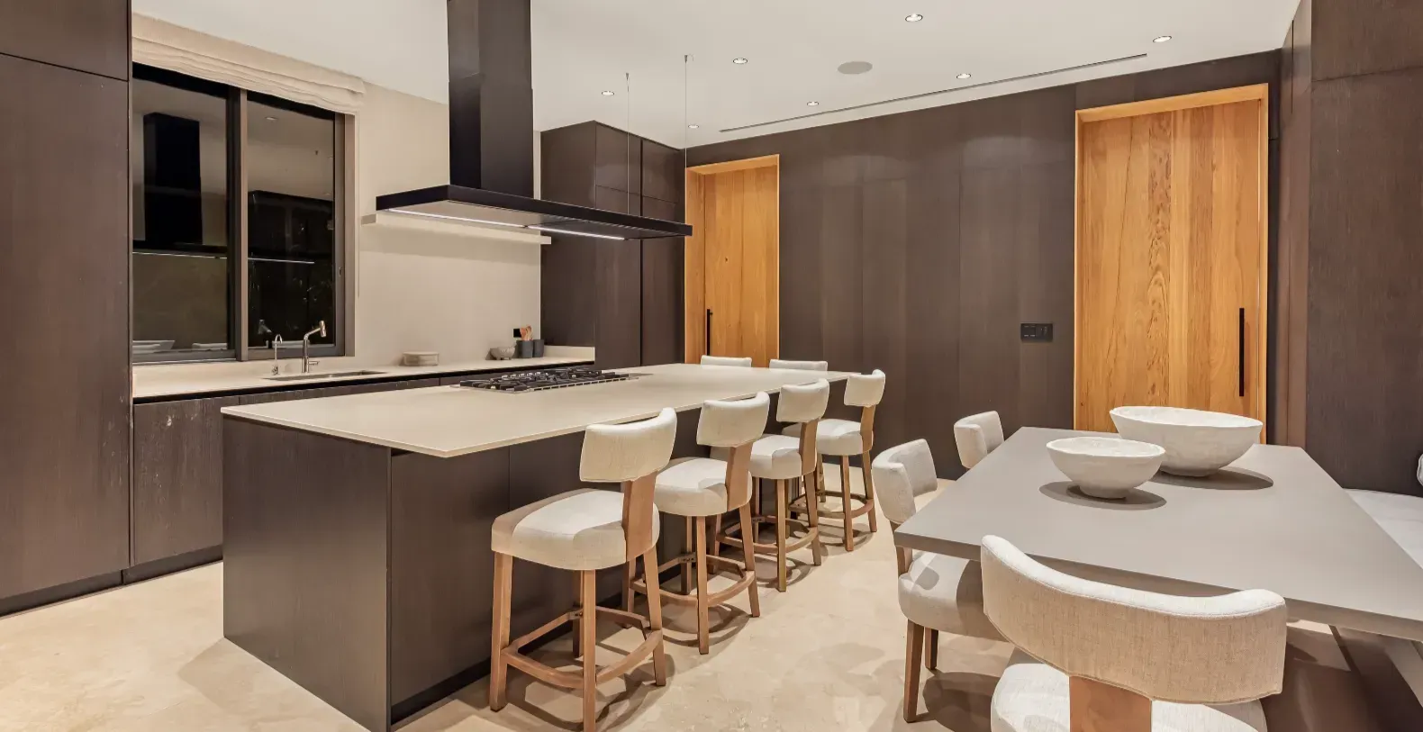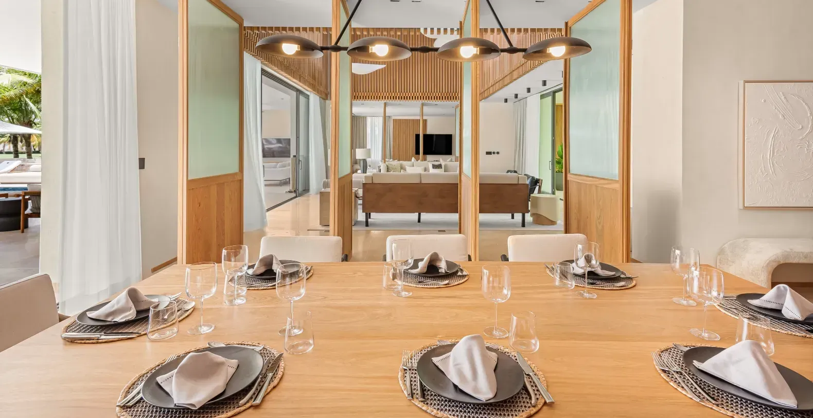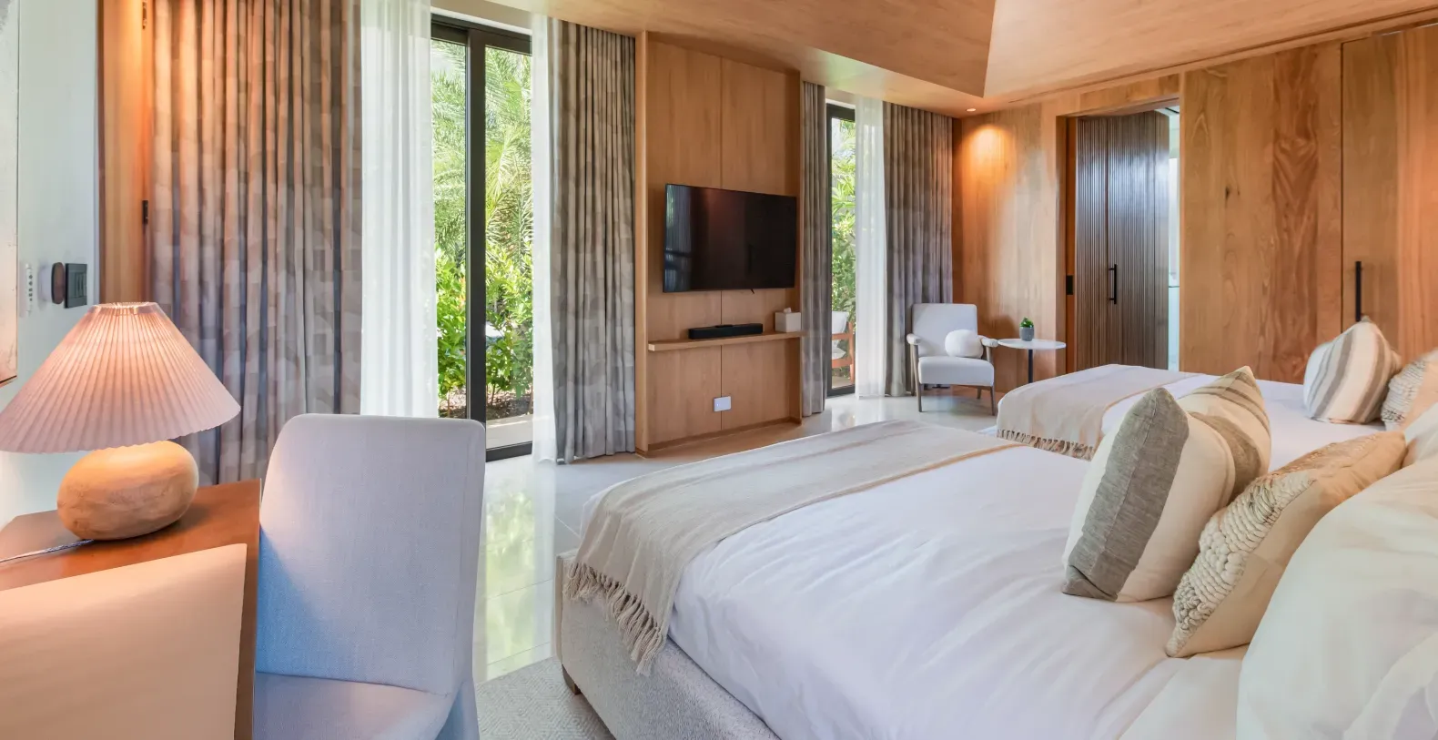 Designed with clean architectural lines, high-end finishes, and expansive open spaces the villa accommodates up to 16 guests in eight luxury designed bedrooms. Each of the eight spacious bedrooms is a haven of comfort, offering air-conditioning, refined design, and access to furnished balconies or serene garden views. The villa is ideal for family vacations, wellness escapes, or upscale group getaways. The double-height living room flows seamlessly to the terrace, creating a light-filled sanctuary. A fully equipped chef’s kitchen and multiple indoor dining areas cater to every culinary moment, from formal dinners to casual breakfasts. Spa-quality amenities abound, including a private massage room, sauna, steam room, cold plunge, and outdoor shower—bringing the luxury of a wellness resort directly to your doorstep.
