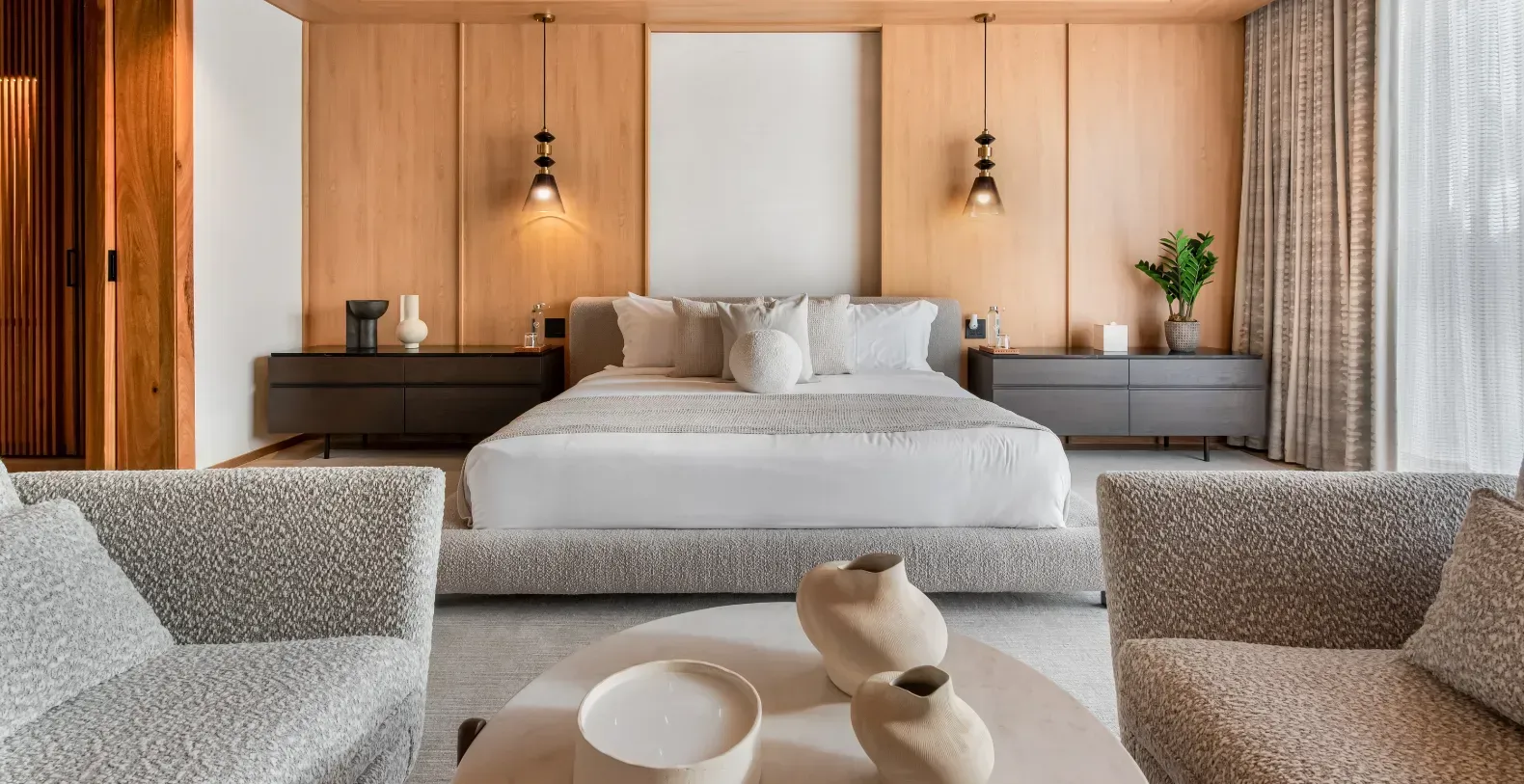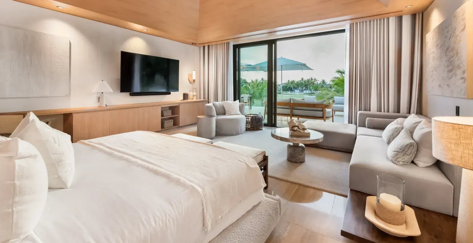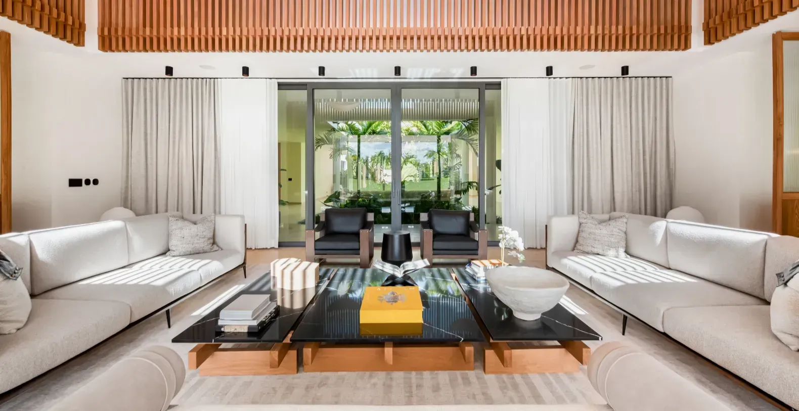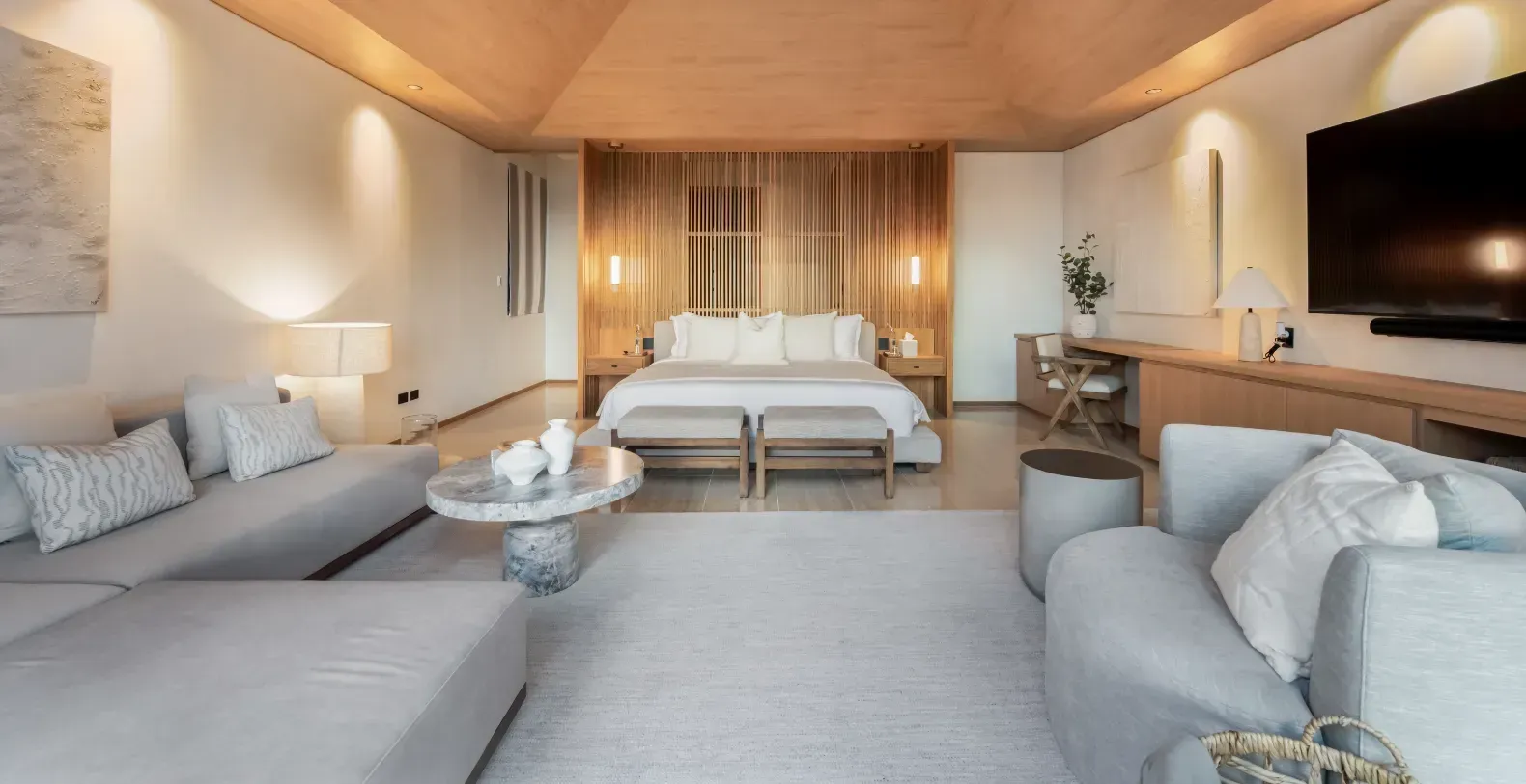 Designed with clean architectural lines, high-end finishes, and expansive open spaces the villa accommodates up to 16 guests in eight luxury designed bedrooms. Each of the eight spacious bedrooms is a haven of comfort, offering air-conditioning, refined design, and access to furnished balconies or serene garden views. The villa is ideal for family vacations, wellness escapes, or upscale group getaways. The double-height living room flows seamlessly to the terrace, creating a light-filled sanctuary. A fully equipped chef’s kitchen and multiple indoor dining areas cater to every culinary moment, from formal dinners to casual breakfasts. Spa-quality amenities abound, including a private massage room, sauna, steam room, cold plunge, and outdoor shower—bringing the luxury of a wellness resort directly to your doorstep.