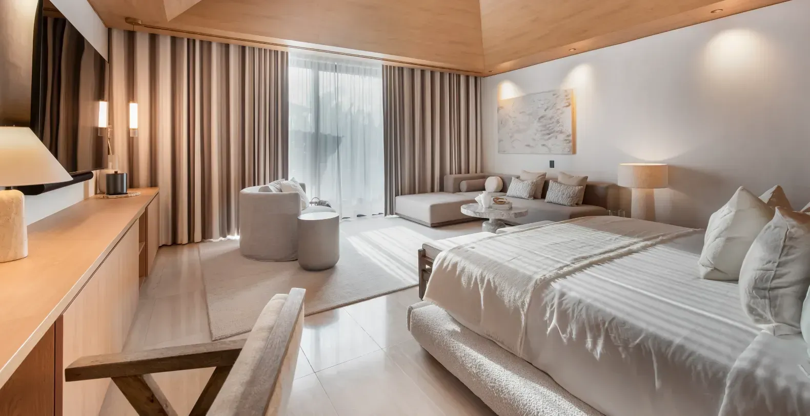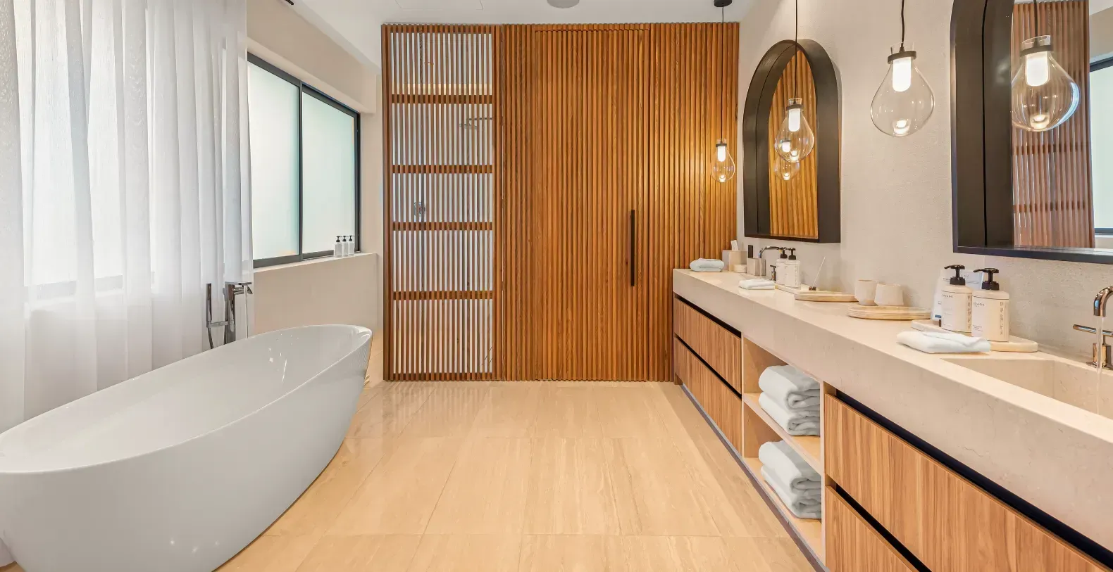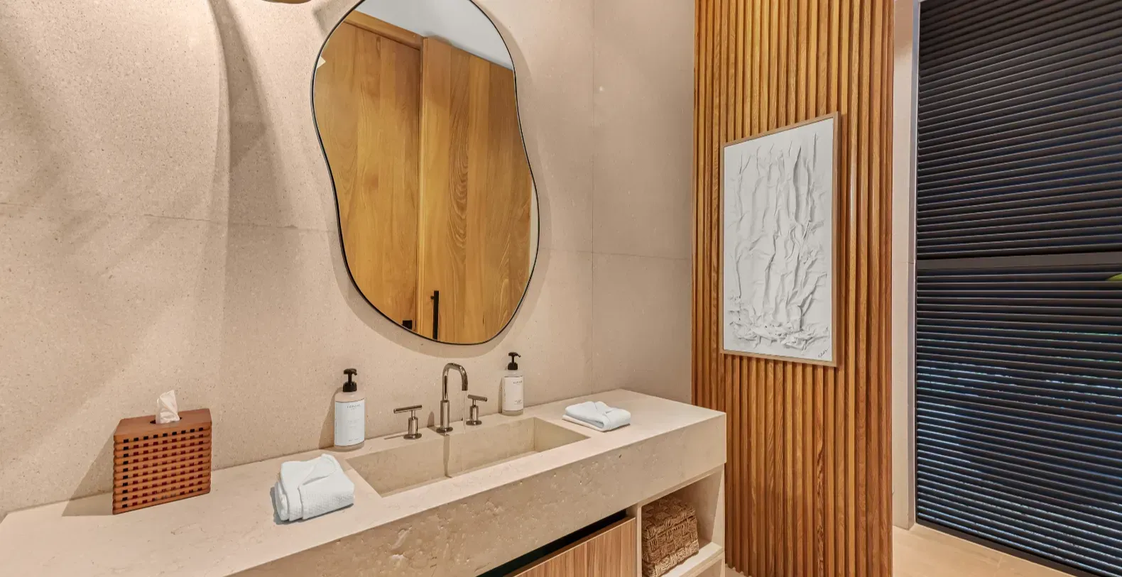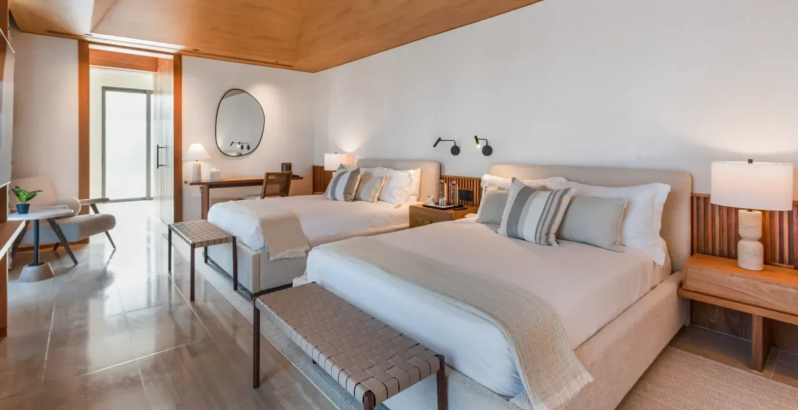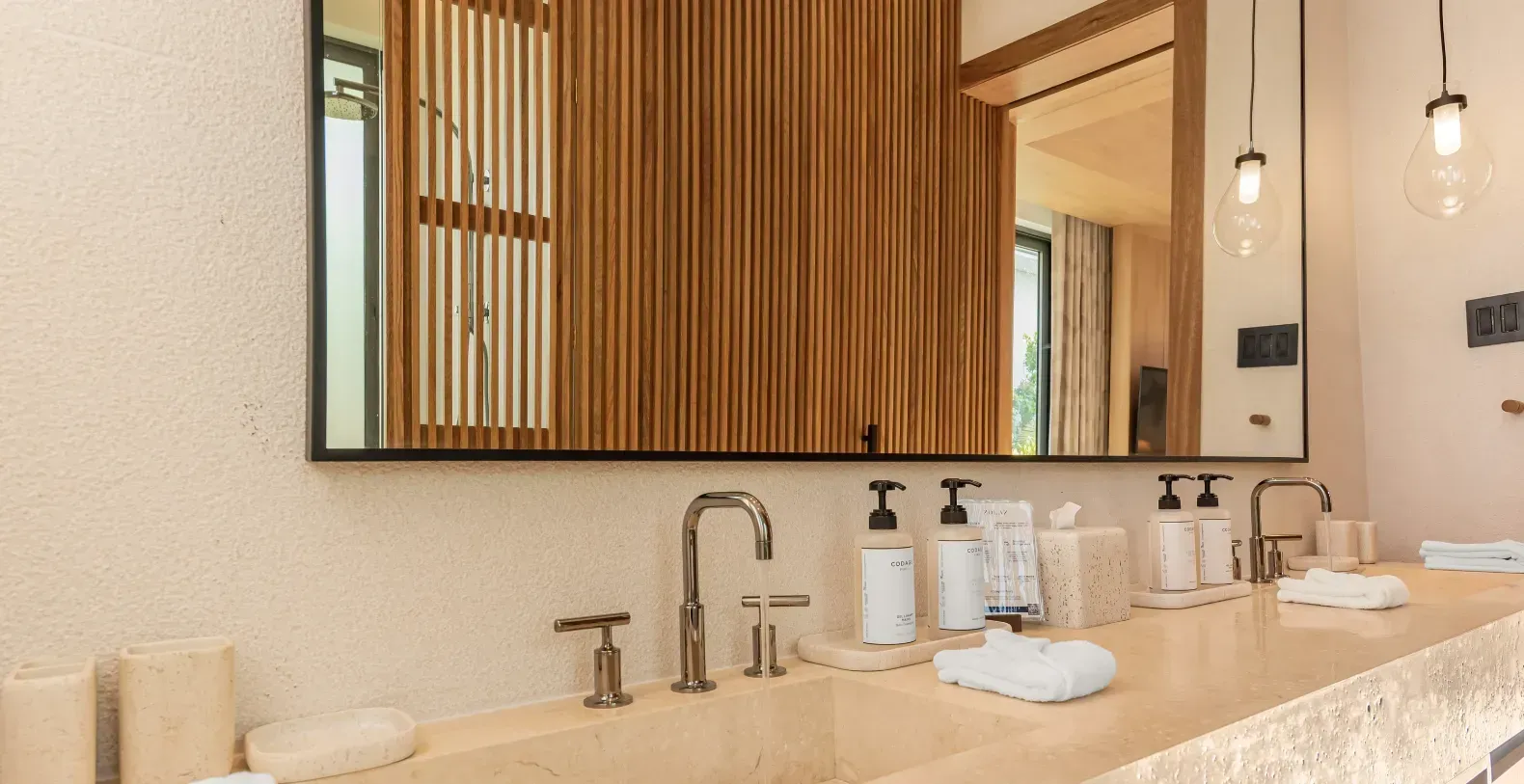Designed with clean architectural lines, high-end finishes, and expansive open spaces the villa accommodates up to 16 guests in eight luxury designed bedrooms. Each of the eight spacious bedrooms is a haven of comfort, offering air-conditioning, refined design, and access to furnished balconies or serene garden views. The villa is ideal for family vacations, wellness escapes, or upscale group getaways. The double-height living room flows seamlessly to the terrace, creating a light-filled sanctuary. A fully equipped chef’s kitchen and multiple indoor dining areas cater to every culinary moment, from formal dinners to casual breakfasts. Spa-quality amenities abound, including a private massage room, sauna, steam room, cold plunge, and outdoor shower—bringing the luxury of a wellness resort directly to your doorstep.