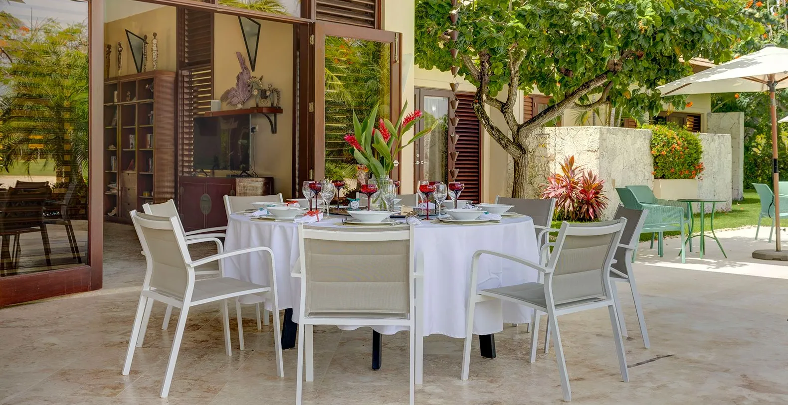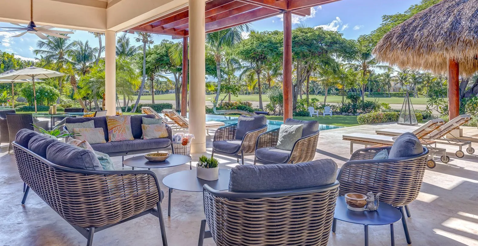 Villa Caballet offers expansive indoor and outdoor living spaces that celebrate the beauty of Punta Cana. The villa’s open-concept living areas are perfect for gatherings, featuring comfortable seating arrangements that invite relaxation and socializing. Step outside to discover a tropical oasis with lush gardens, a sparkling pool, and multiple seating areas ideal for lounging and taking in the surroundings.