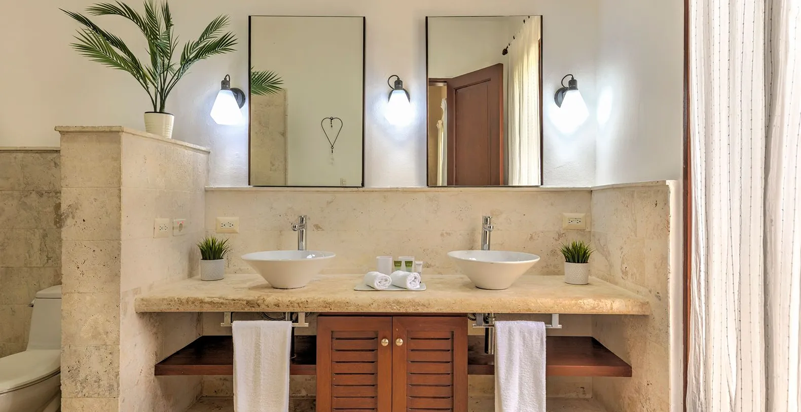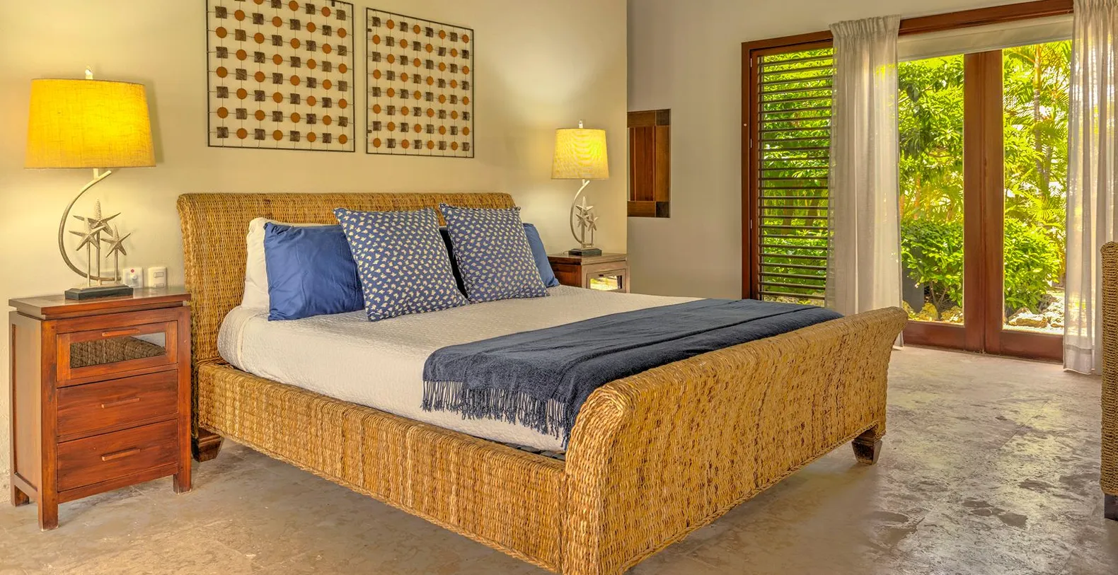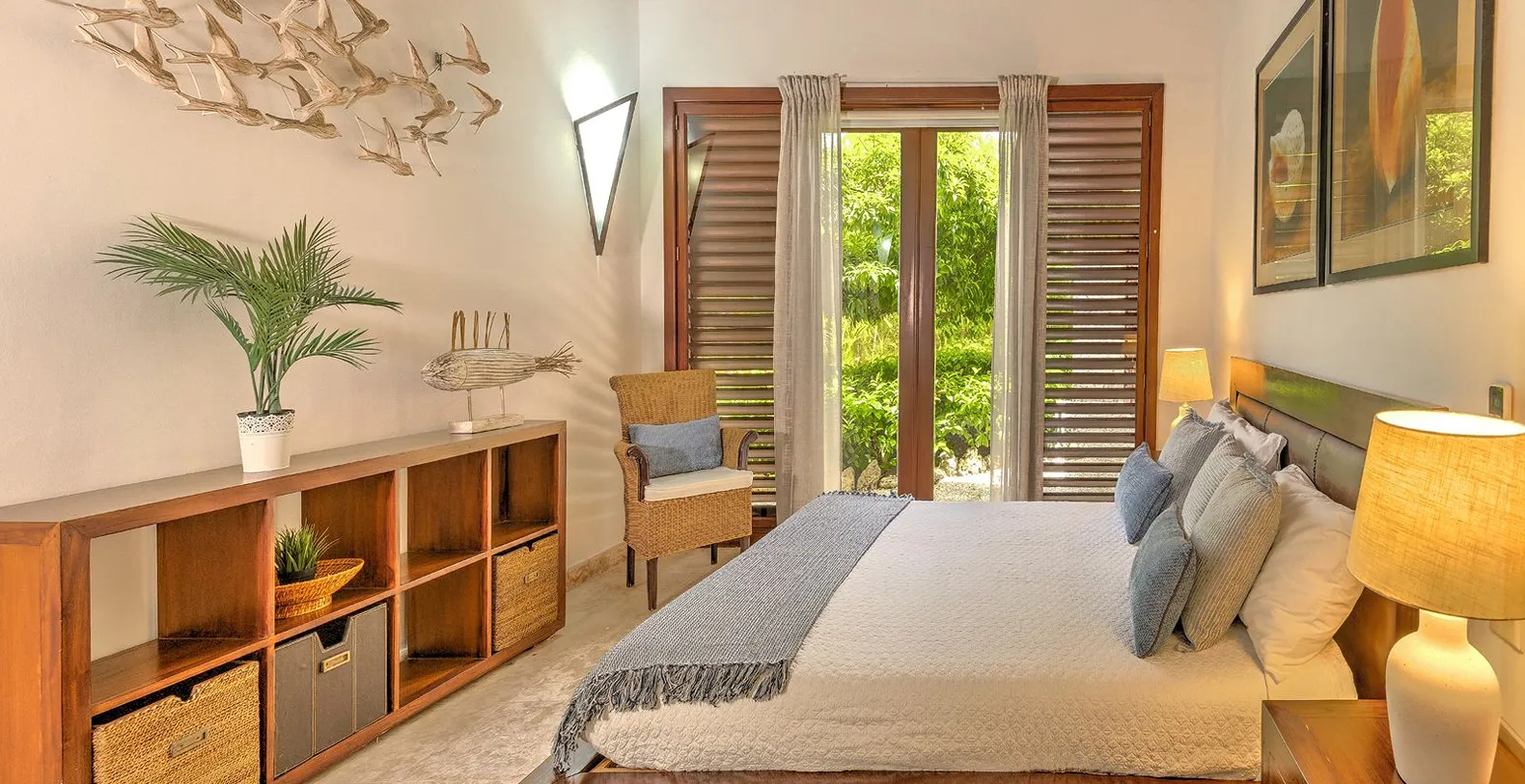 Villa Caballet features four beautifully designed bedrooms, each equipped with air-conditioning for ultimate comfort. Two of the bedrooms have king-size beds, one bedroom offers two full beds, and the fourth bedroom is furnished with a queen-size bed. Every bedroom includes a luxurious ensuite bathroom, complete with high-end amenities that add a touch of elegance to your stay. The villa’s layout accommodates up to ten guests, making it an ideal choice for family vacations or group getaways. This vacation villa has been thoughtfully designed with eco-friendly principles in mind. Villa Caballet provides a private entrance and a dedicated parking space, ensuring convenience and privacy for all guests. The villa is staffed with daily housekeeping, allowing you to fully relax and enjoy your time in paradise.