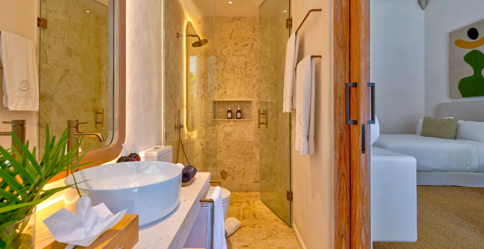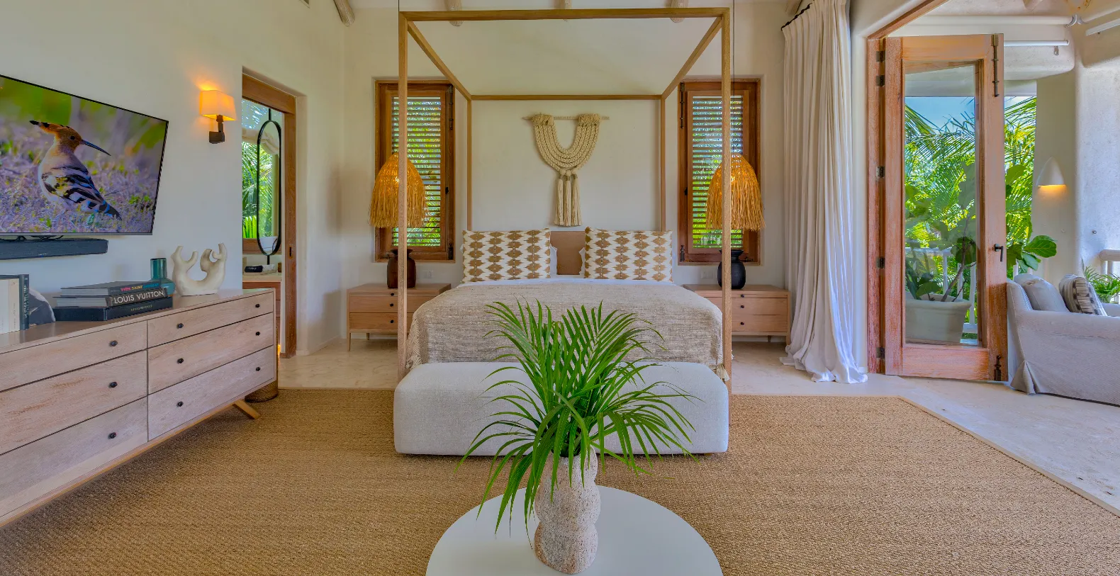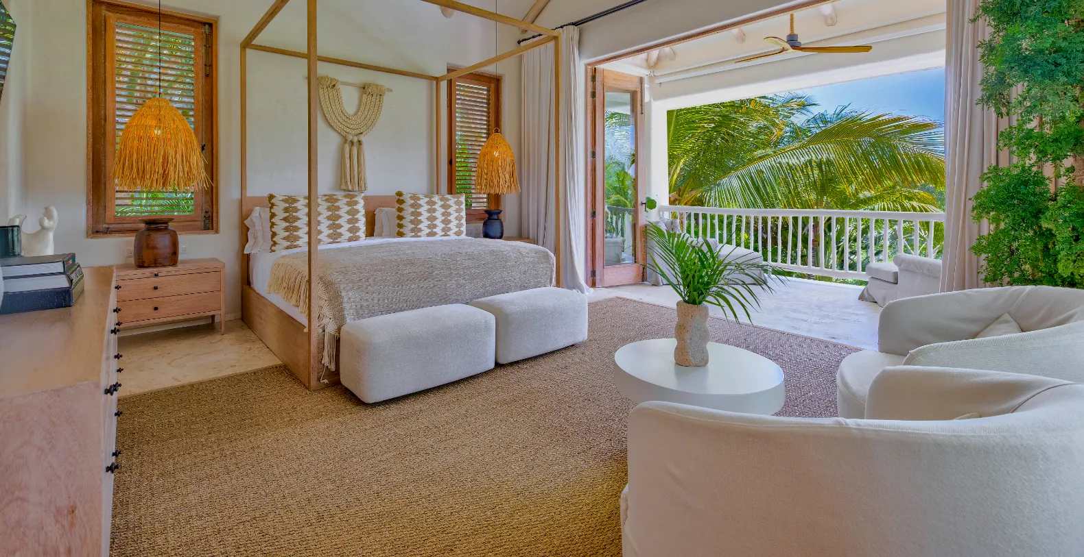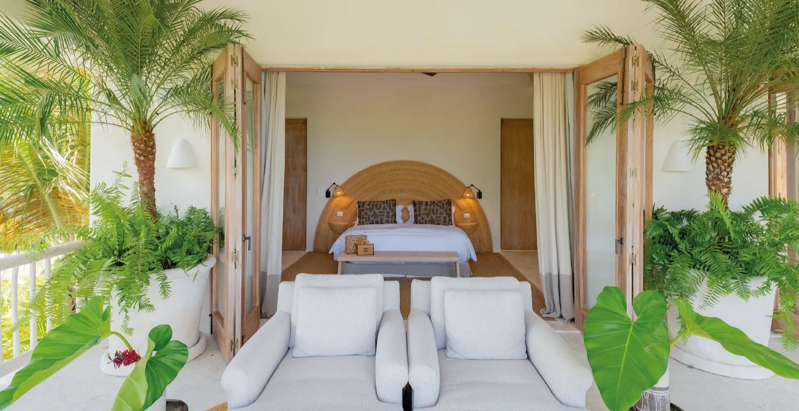 You will see that Casa Calma is an organic villa, where art and crafts go hand in hand, with unique pieces from Mexico and Spain, but also from the Dominican Caribbean, India or Morocco personally chosen by their owners, a writer and fashion editor, and her husband. “We are Mediterranean, we have lived in Mexico for 11 years and we fell in love with Punta Cana seven years ago. This temple of serenity and tranquility is located in one of the most recognized and awarded gated communities in the entire Caribbean, Punta Cana Resort.