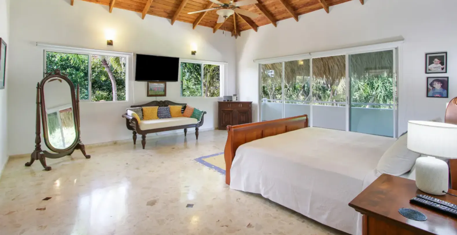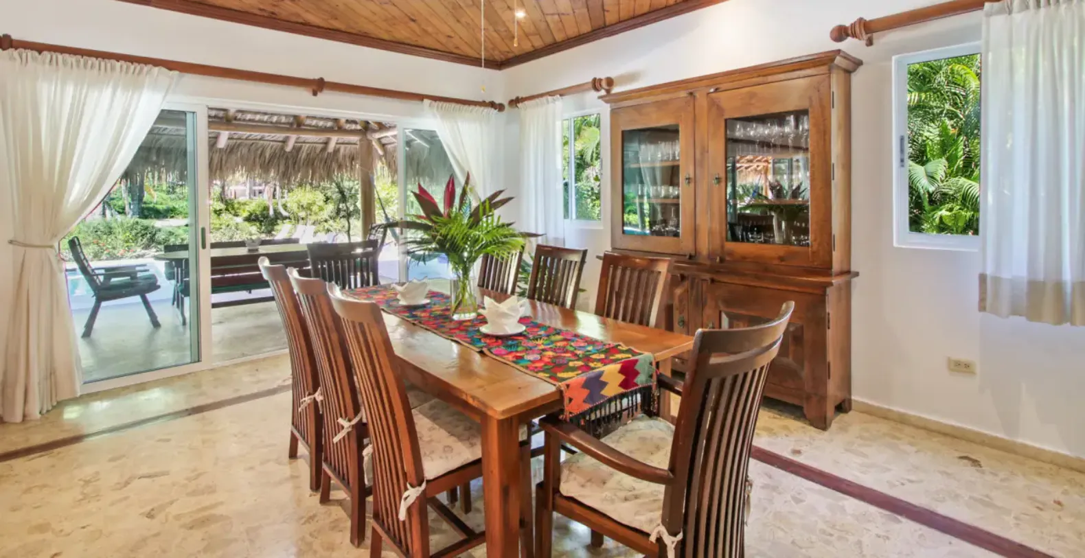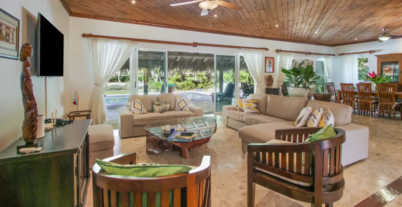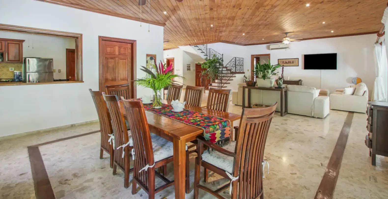 From the moment you step inside Los Ensueños, the villa’s warm and inviting atmosphere sets the tone for an effortless Caribbean stay. The spacious open-plan living and dining areas are designed to feel relaxed and welcoming, with natural light flowing throughout and large sliding doors opening directly onto the terrace. In true island style, the Tortuga neighborhood is known for its calm and safety, and it is common for residents and guests to leave doors open to enjoy the gentle tropical breeze moving through the home.