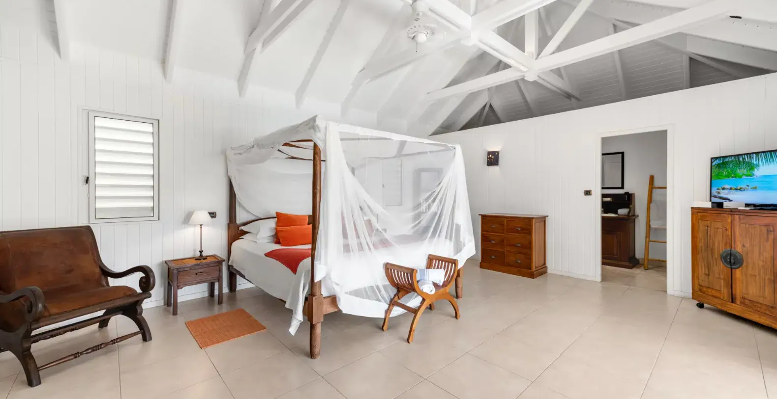 Villa Petit Saint Louis feels wonderfully private yet remains close to the island’s best attractions. A private footpath leads down through the gardens to Corossol Beach, where calm waters invite swimming and snorkeling. In the evenings, you can enjoy the colorful sight of local fishing boats returning to shore, adding to the villa’s authentic charm. For larger groups, Villa Petit Saint Louis can be rented together with nearby Habitation Saint Louis, creating a spacious five-bedroom estate ideal for families or friends traveling together.