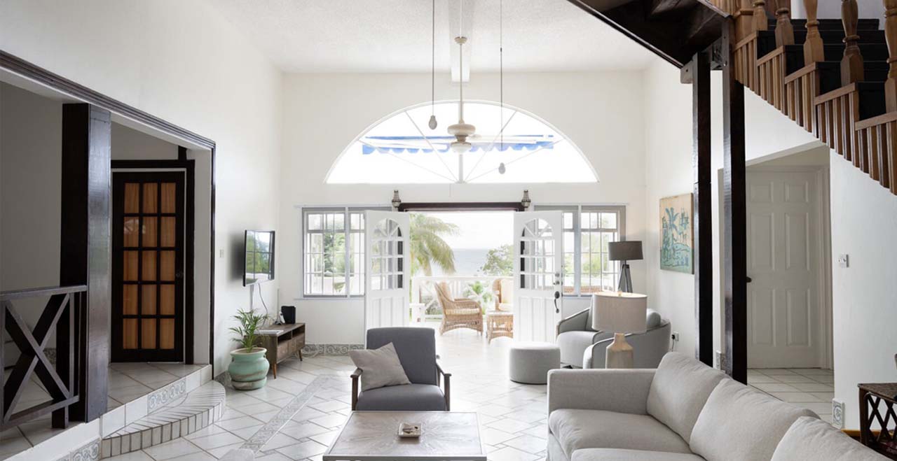 The villa enjoys a spacious living area furnished in the Caribbean style, with an open plan sitting room adjoining a dining area and a large well-equipped kitchen with a separate laundry room. All the living areas are cooled with ceiling fans. All of the three double bedrooms are air-conditioned and enjoy private balconies with sea views. The air-conditioned master suite on the top floor of the villa has a balcony with a panoramic view of the Caribbean Sea. The villa and its gardens are private and feature a wonderful 30 ft. pool along with a pool side gazebo and lots of terrace areas for relaxing and watching the hummingbirds alight on the bougainvillea and the sail boats drift by. Enjoy sundowners on the patio and al fresco dining as the sun goes down and enjoy the colorful glow of twilight.