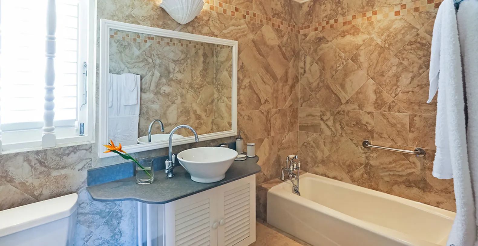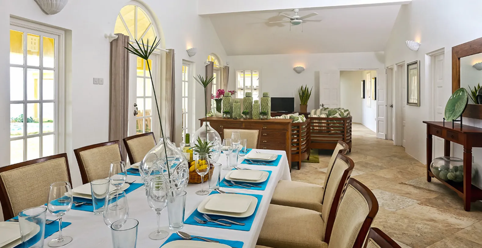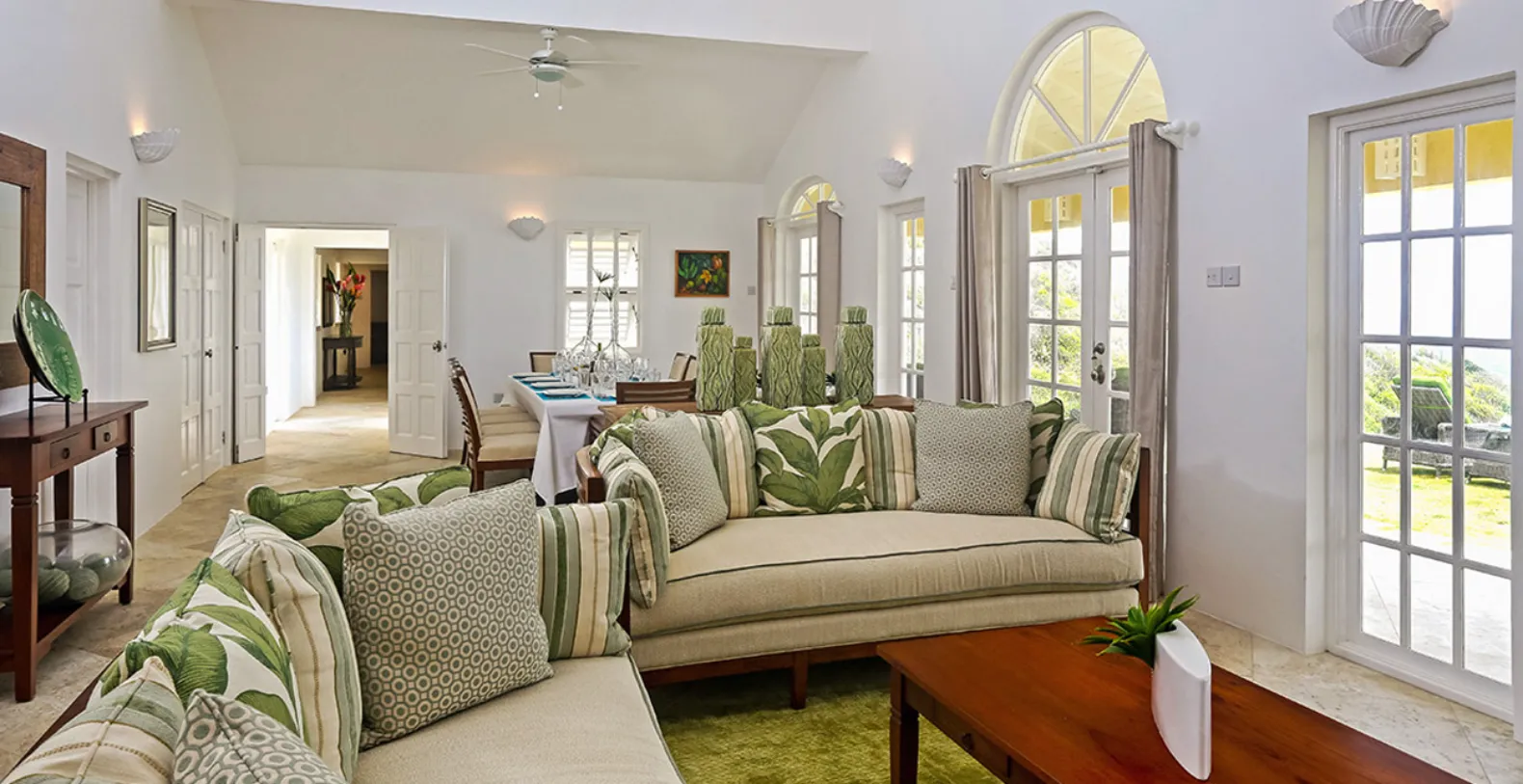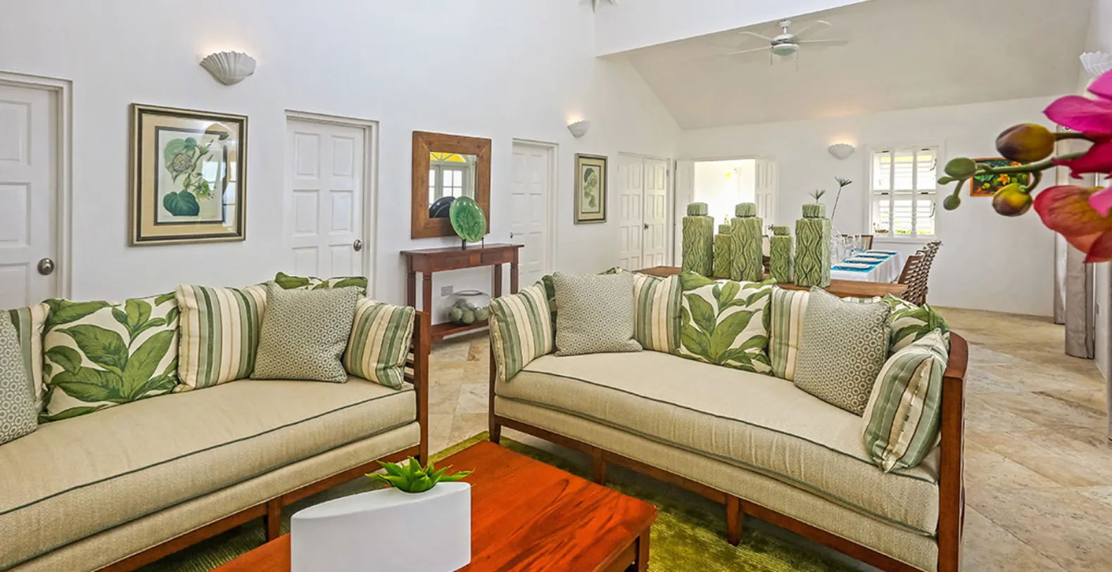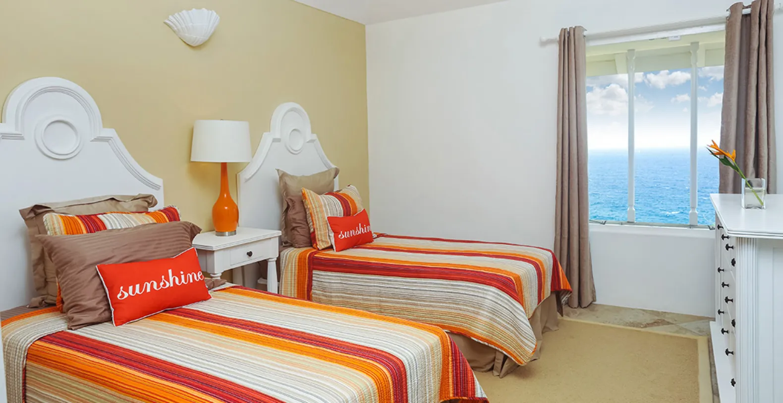 There are 4 bedrooms each with ensuite bathrooms. Each bedroom has been artistically decorated by local interior designers, Inside Out. The modern yet Caribbean flair they have chosen is evident through out the house, extending to the living and dining area and out to the pool and deck area. The private swimming pool is a haven of tranquility, where one can hear the sounds of the waves crashing below and also where you might spot migrating whales! The pool area is complete with a swim up bar.