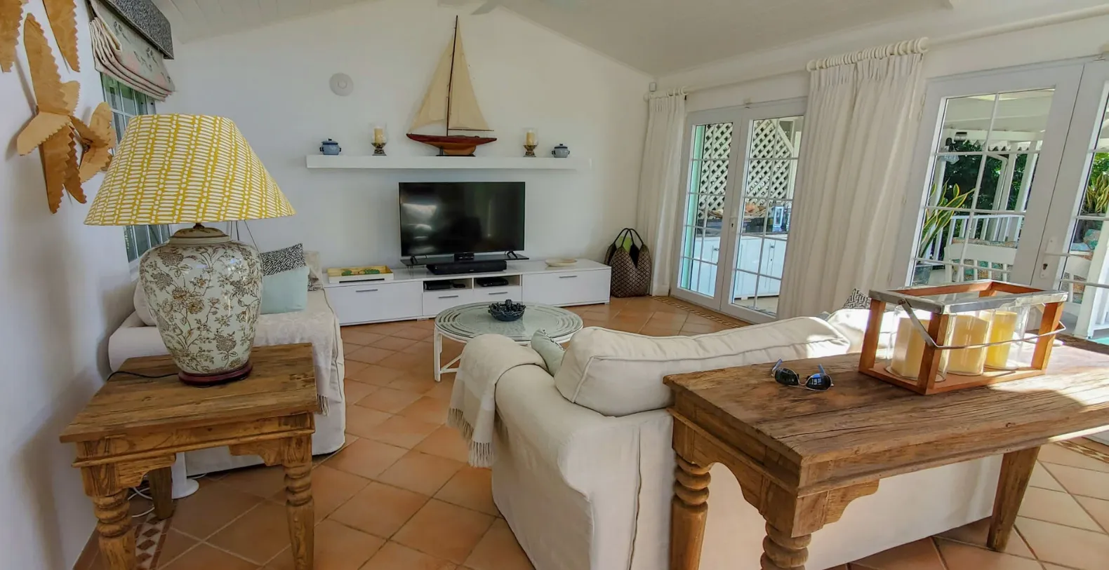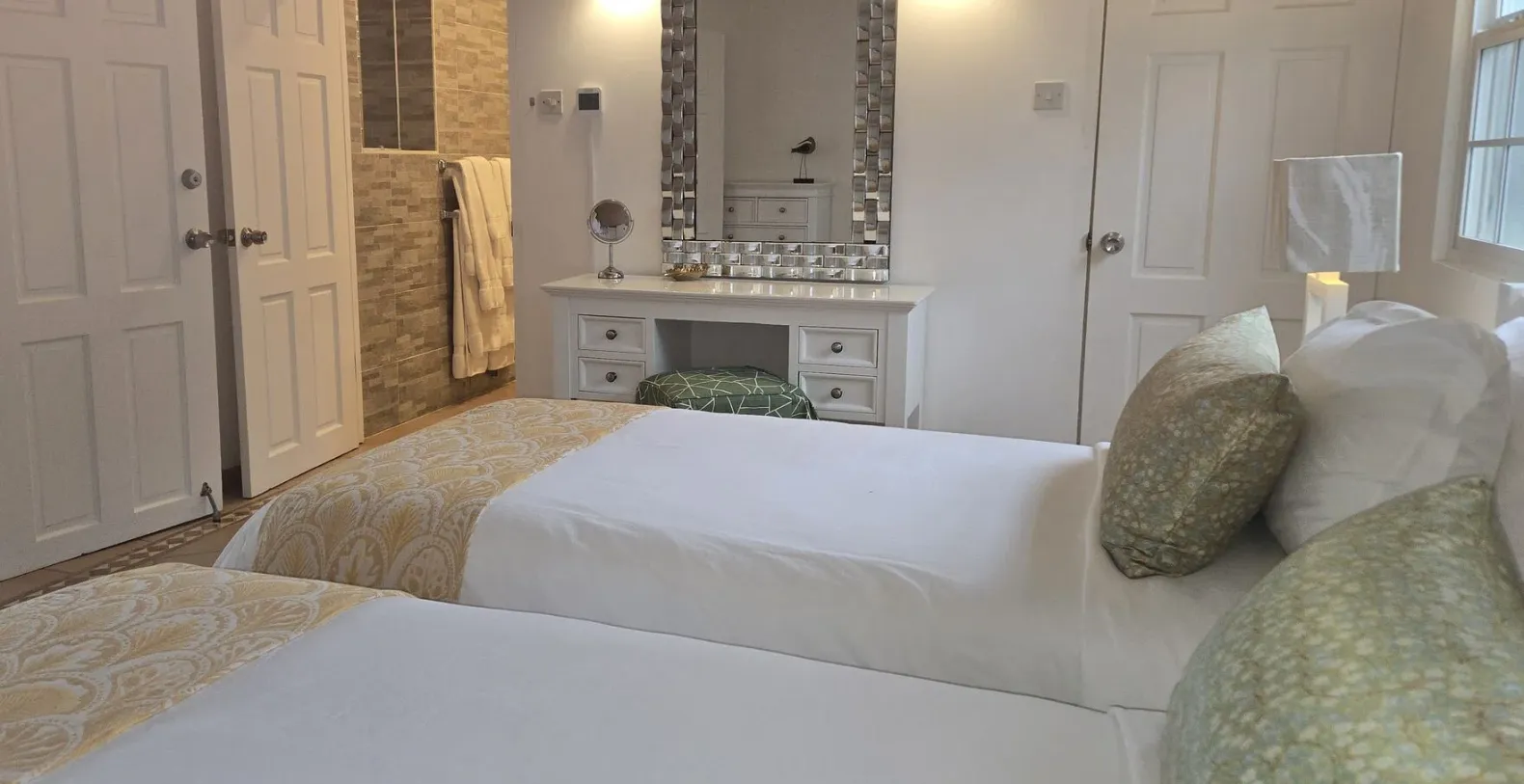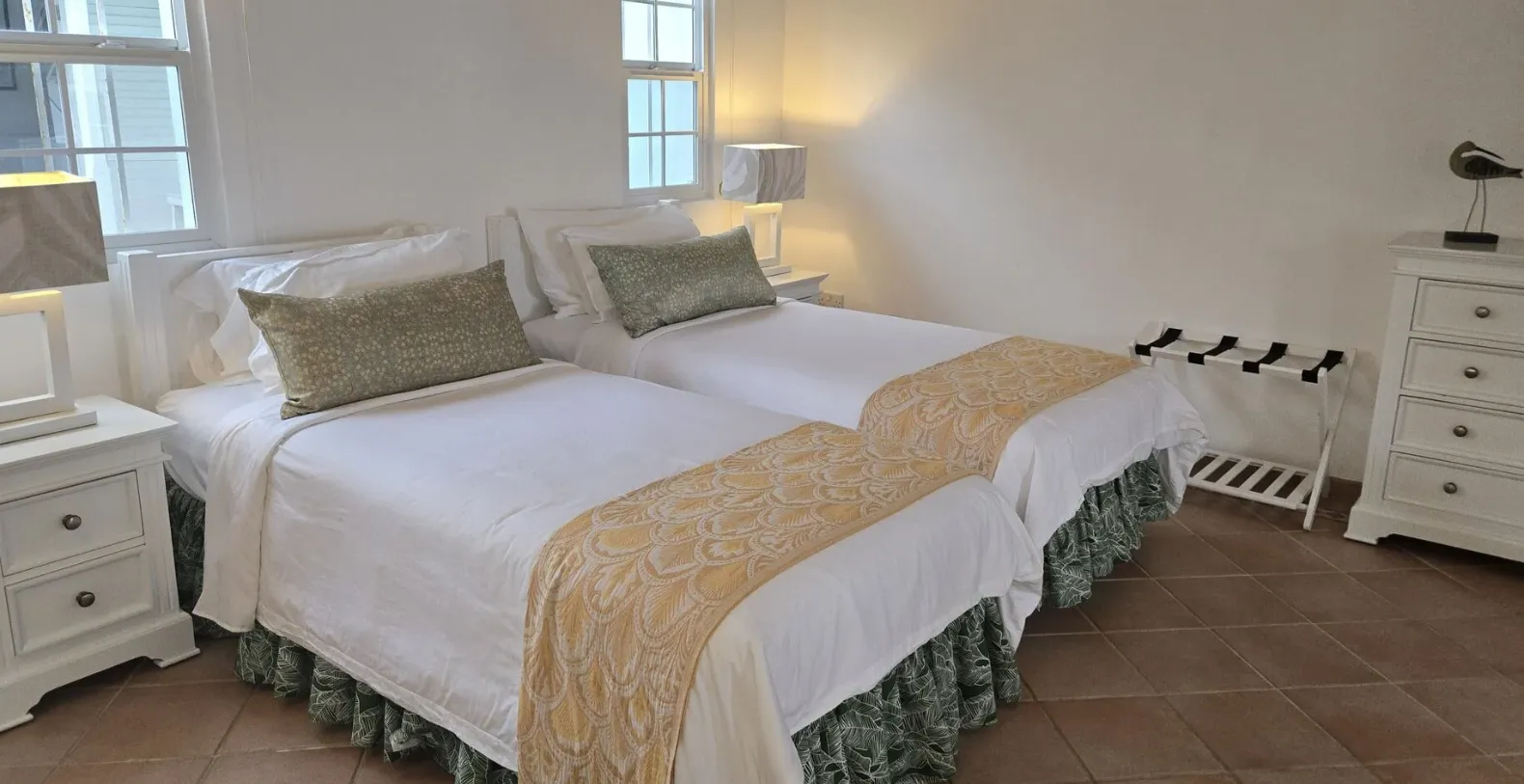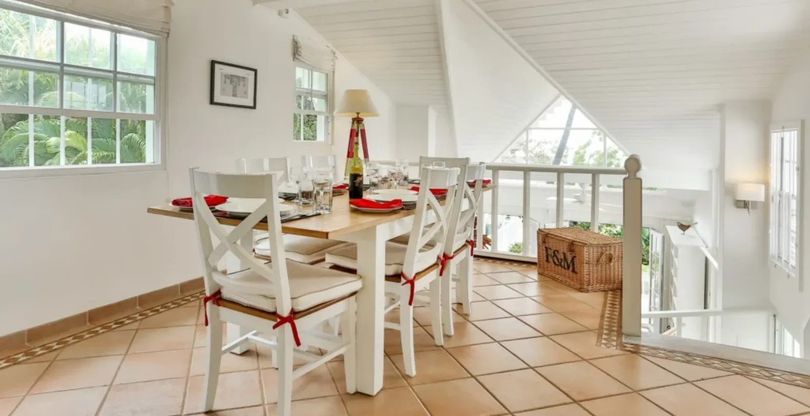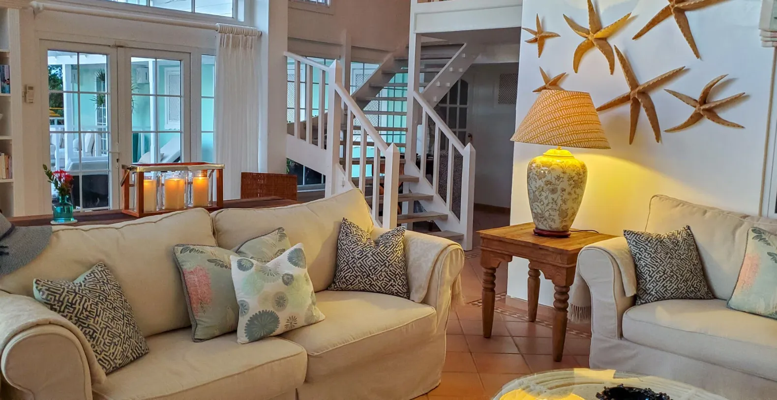 Designed to be enjoyed as either a three-bedroom or two-bedroom vacation rental, Saline Reef Villa offers flexibility without compromising privacy or comfort. The villa features three beautifully appointed, air-conditioned bedrooms, each with an ensuite bathroom and walk-in closet. Two of the bedrooms are ocean-facing, allowing guests to wake up to the sound of waves and sweeping sea views. The lower seaside suite enjoys direct access to the pool through a furnished covered porch, while the upper seaside suite opens onto a private balcony overlooking the Caribbean. The third interior suite can be arranged with either a king bed or twin beds, making it ideal for families or friends traveling together.