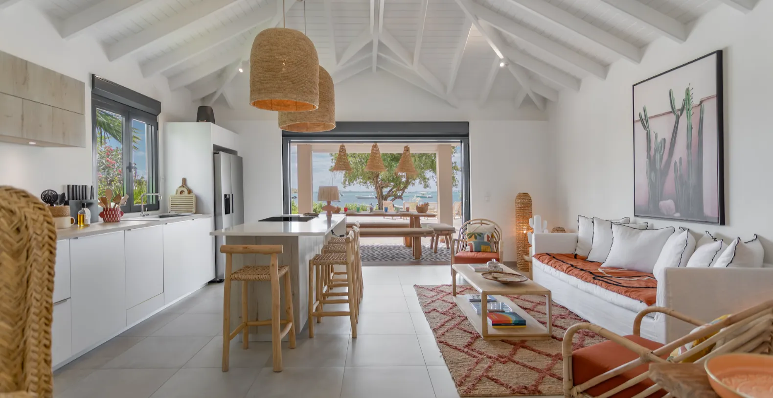 Set along the serene shores of Cul de Sac Bay, The Beach House is a vacation villa with effortless beauty of St. Martin’s coastal living. This contemporary three-bedroom luxury villa invites guests to indulge in the perfect blend of modern comfort and island tranquility. With direct beach access and panoramic views across the bay to Pinel Island and St. Barts, this private retreat redefines barefoot elegance.