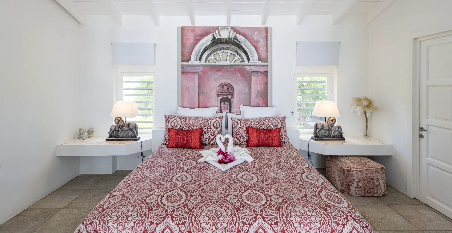 Nestled on the powdery shores of Baie Rouge, Villa La Perla Classic emerges as an intimate, romantic vacation rental in St. Martin. Located within the gated community of Baie Rouge Residence, just a short drive from great restaurants and many attractions the villa provides serene escape without being too isolated. Designed exclusively for romantic retreats and blissful honeymoons, this one-bedroom sanctuary whispers the story of love through its luxurious amenities and serene private spaces.