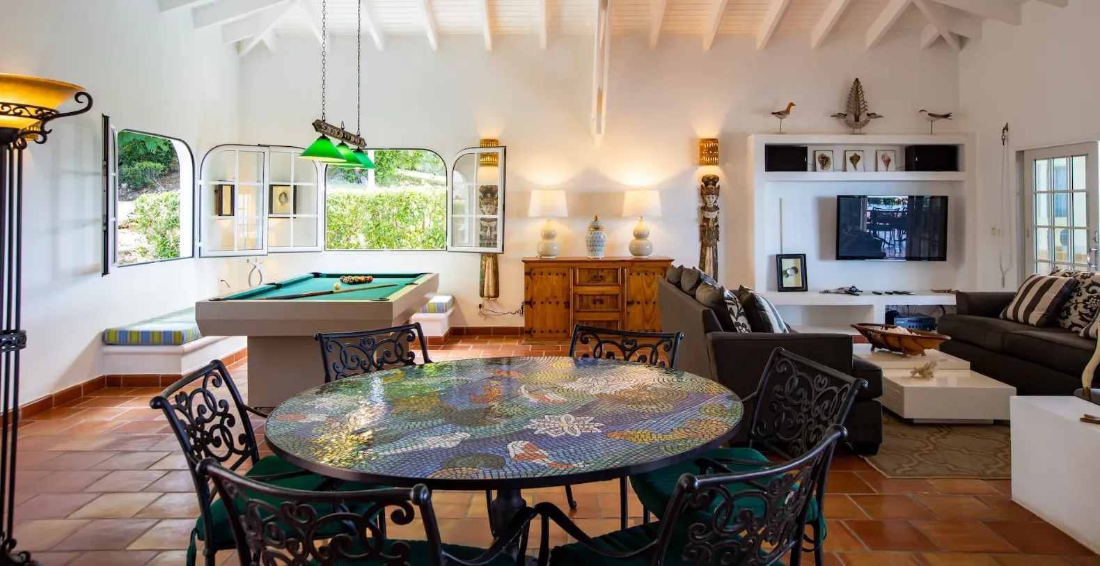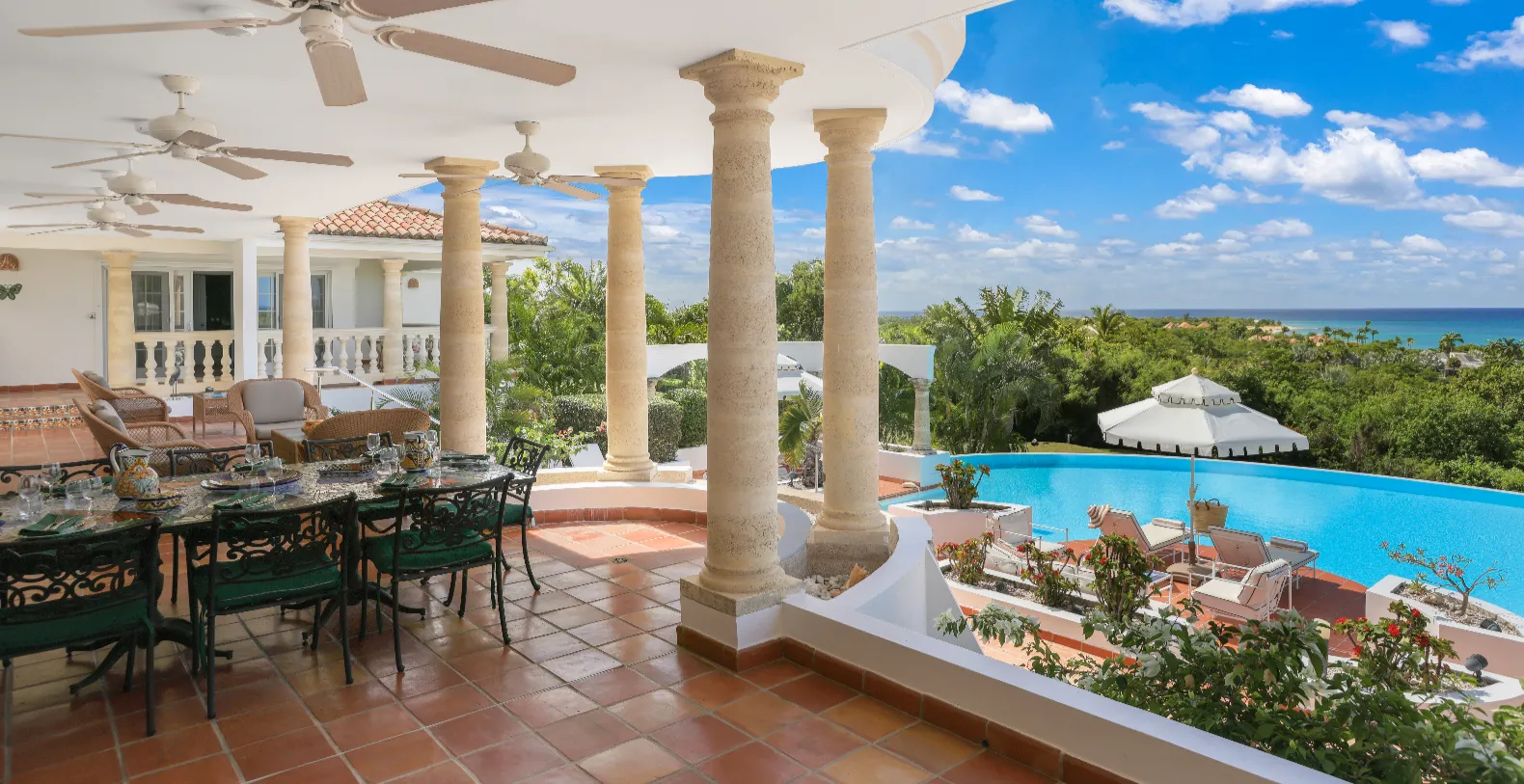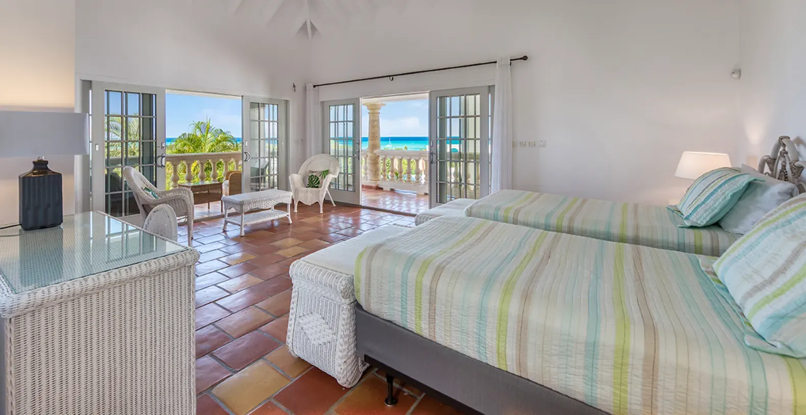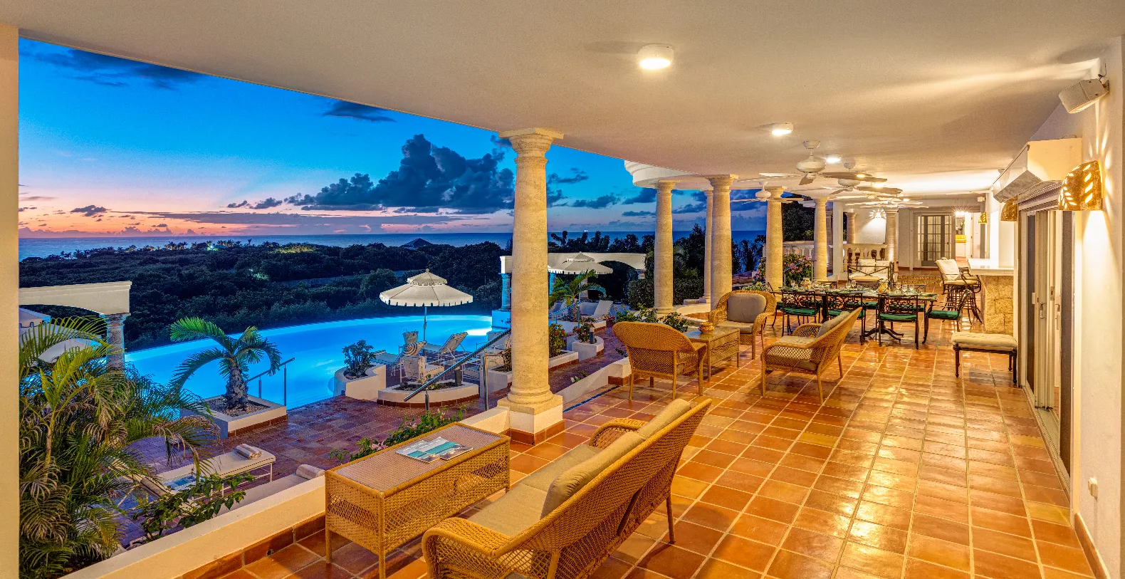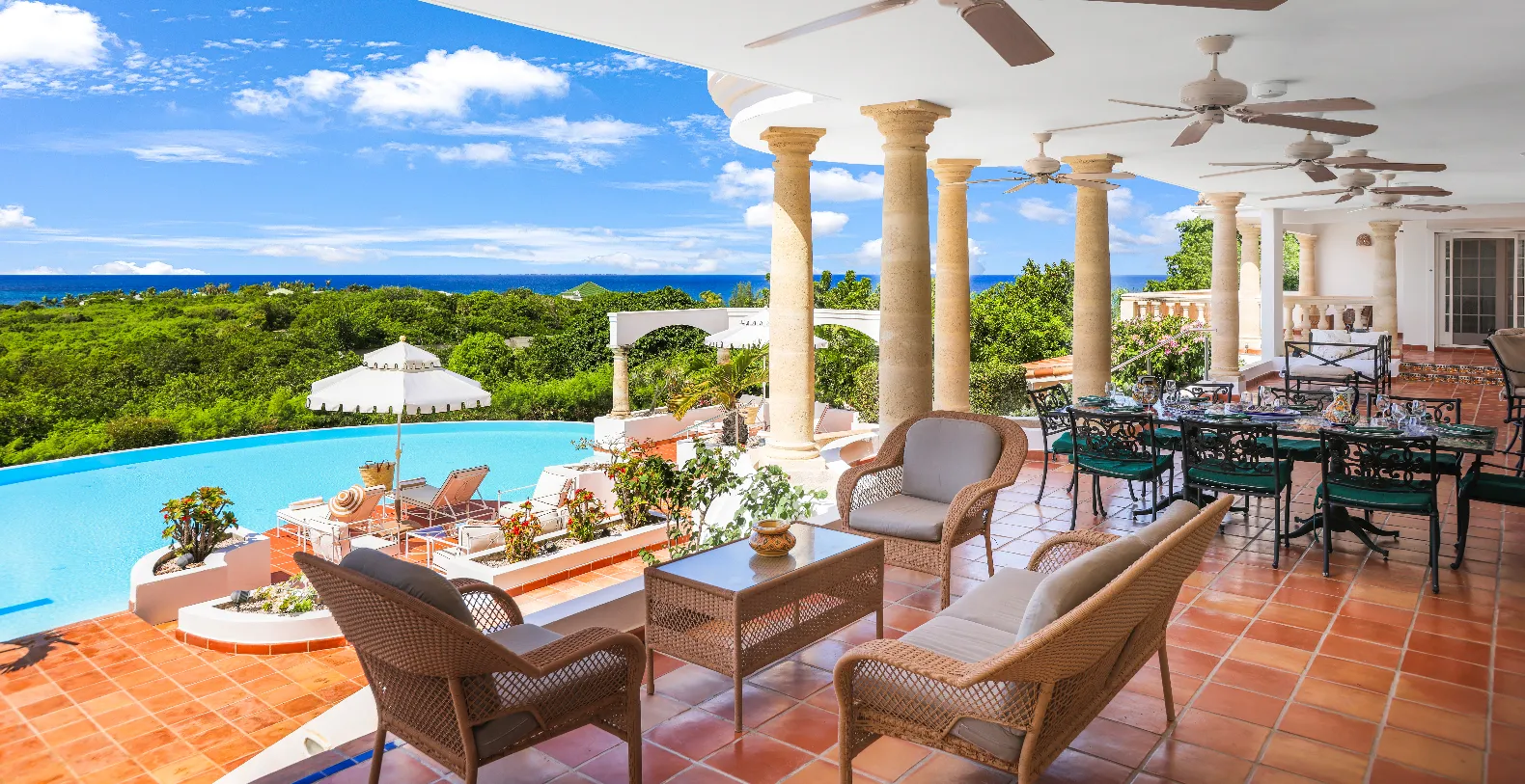 The property boasts an impressive ocean view terrace on several levels with an infinity-edge pool that seems to flow into the ocean, with ample lounging areas for sunbathing or al fresco dining. Guests have multiple sitting areas and loungers available. Pool heating is also available for an additional $350 per week, perfect for ensuring comfortable dips year-round. Without a hesitation we can conclude that Villa Mariposa is the ideal choice for families or groups seeking both relaxation and refined luxury in a serene setting. It’s the perfect blend of privacy, comfort, and panoramic beauty.