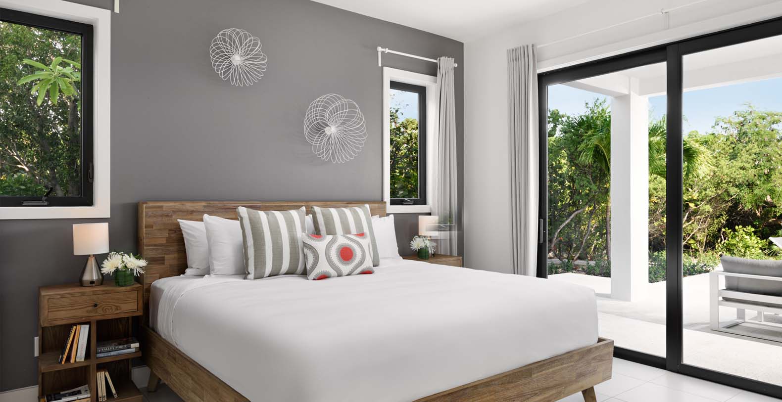 Alize Villa is a beautiful vacation rental in Long Bay, Turks & Caicos with pathway to beaches and amazing modern style. The villa is new and has a great layout, with open concept giving you access to the large kitchen and bar area that opens up into your living spaces, dining and terraces. From the open space you can look out onto your ocean view and the magical sunsets are incredible off of your private patio. The bedrooms are not only perfectly balanced but you have modern décor, wonderful luxury linens and beautiful bathrooms which are resort style with plush towels and great space for couples or families.