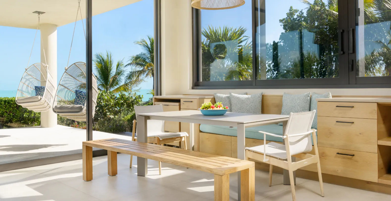The pool has a generous shallow area for family play, and a “Rose” bench for in-water lounging and taking in the views. This is where families love to unwind with their families and enjoy the crashing of the waves and the ocean breezes all whilst sitting around their private pools enjoying the day. Outside you'll find plenty of seating, loungers and a wonderful covered area for just taking in the day and reading a book while enjoying the warmth of the day. And after you've warmed up, take a stroll down a private path to the beach and enjoy a dip into the cool ocean waters. After all, this is Turks & Caicos—and the beaches truly are what people love.