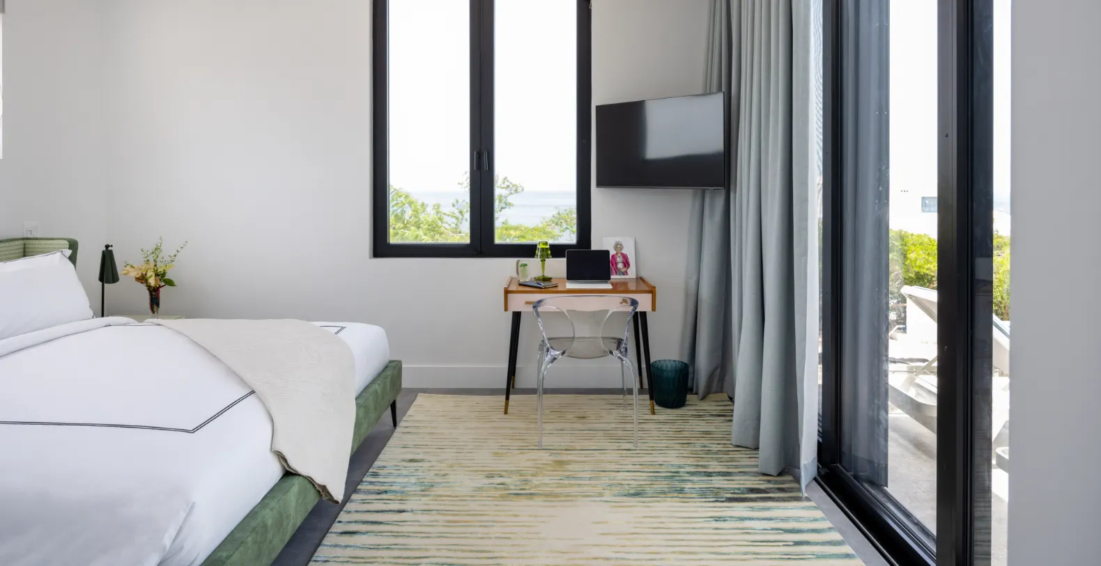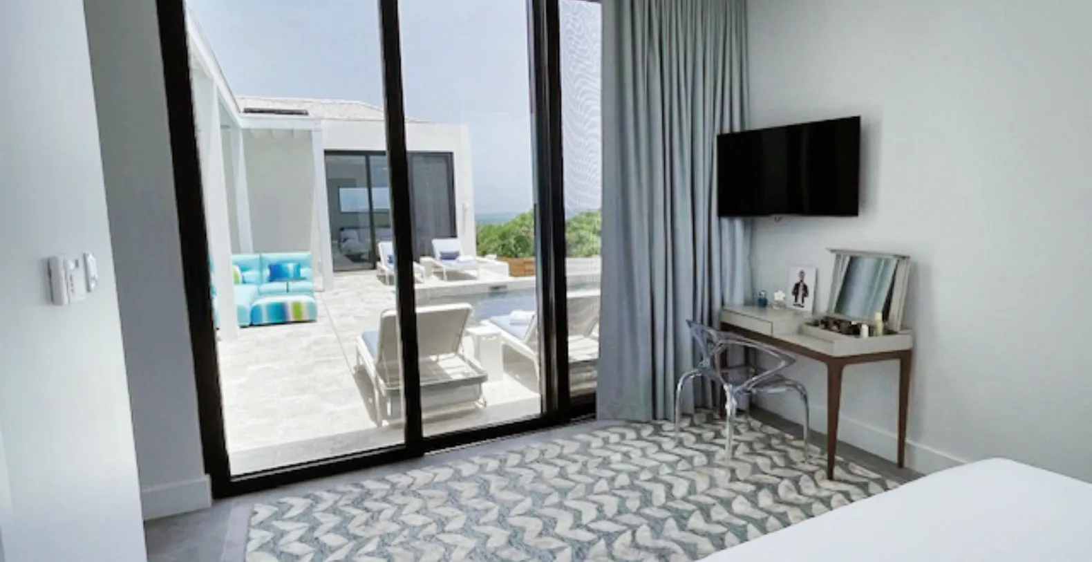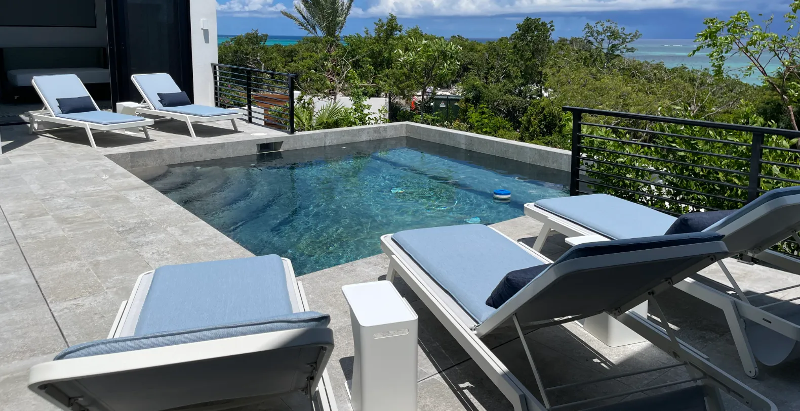 Step outside to your private terrace, where you can unwind on sun loungers by the inviting pool offering amazing views towards the Ocean. The terraces are perfect for soaking in the sun, sipping on a refreshing drink, or simply taking in the stunning views. For those who need to balance work with leisure, two of the bedrooms in each villa are equipped with stylish workspaces, complete with comfortable seating and ample desk space, allowing you to stay connected in a serene environment. Nestled in the serene ROCKHOUSE RESORT, Luna & Pluto Villas provide easy access to the best that Turks and Caicos has to offer. Whether you’re strolling to the beach, exploring nearby attractions, or enjoying the privacy of your villa, these properties offer the ideal balance of convenience and seclusion.