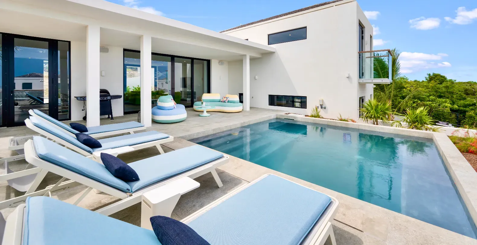 For smaller groups, Skyline Estate also offers flexible rental options. Guests may reserve as few as four villas, enjoying full access to their private spaces and shared resort-style amenities. Please note that in this configuration, the remaining villas within the estate may be occupied by other guests, ensuring the property remains lively yet exclusive.