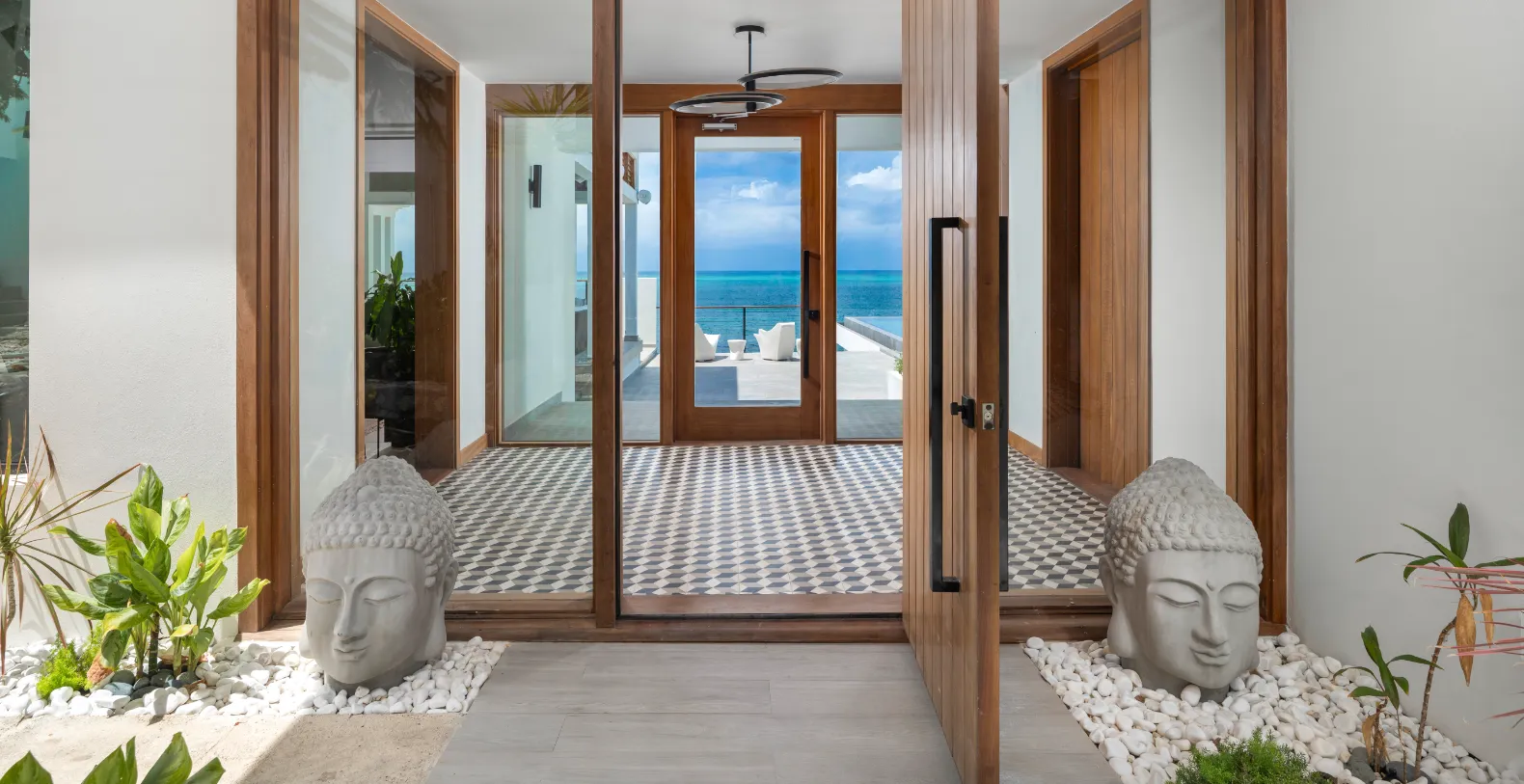 Villa Eden is an oceanfront vacation retreat, located on the northern slope of Blue Mountain on Turks & Caicos. The villa offers a luxury blend of Caribbean elegance and Balinese-inspired serenity. Overlooking the sparkling turquoise waters of the island’s north shore, this striking 7,000-square-foot estate offers panoramic views, seamless indoor-outdoor living, and an extraordinary level of privacy.