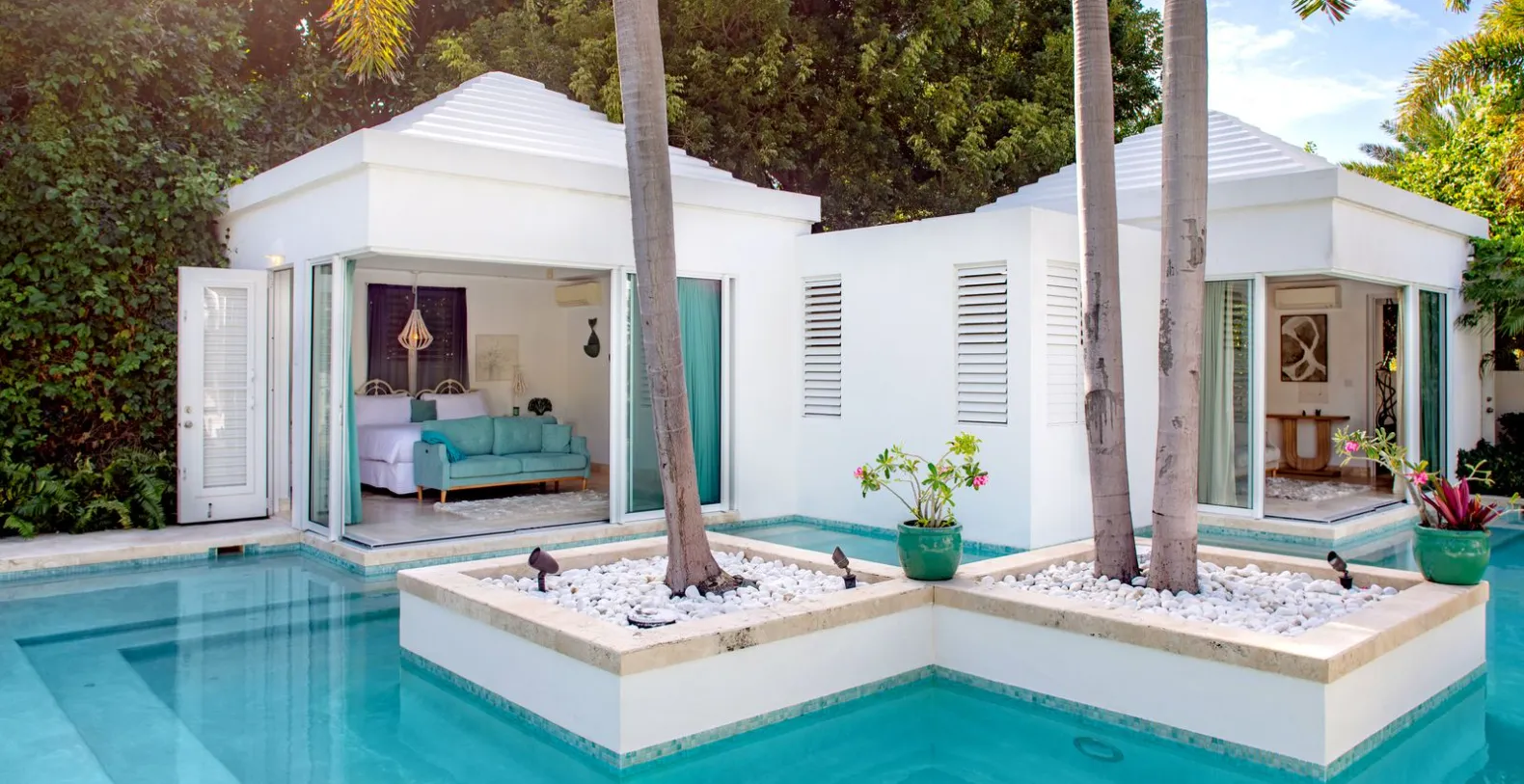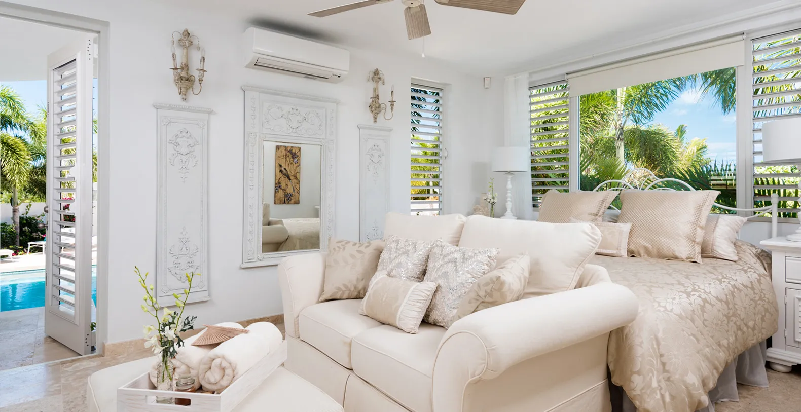 Inside and out, Lidija House blends contemporary design with Caribbean charm. Seven uniquely styled bedrooms accommodate up to 14 guests in breezy comfort - five with king-size beds and two with two double beds each—each featuring an en-suite bathroom with stand-alone shower, dual vanities, Molton Brown toiletries, Samsung Smart TV with Apple TV, mini-fridge, ceiling fan, personal safe, and air conditioning. Expansive living spaces open directly onto terraces, creating a seamless indoor-outdoor flow for gathering or retreating in privacy. Outdoors, the estate feels like your own boutique resort. Two shimmering pools and a bubbling hot tub overlook the beach, while front and back swim-up bars keep cocktails flowing. Host unforgettable dinners at the 14-seat alfresco table, fire up the barbecue for a casual night under the stars, or watch the kids delight in their own playground while you slip into total relaxation.