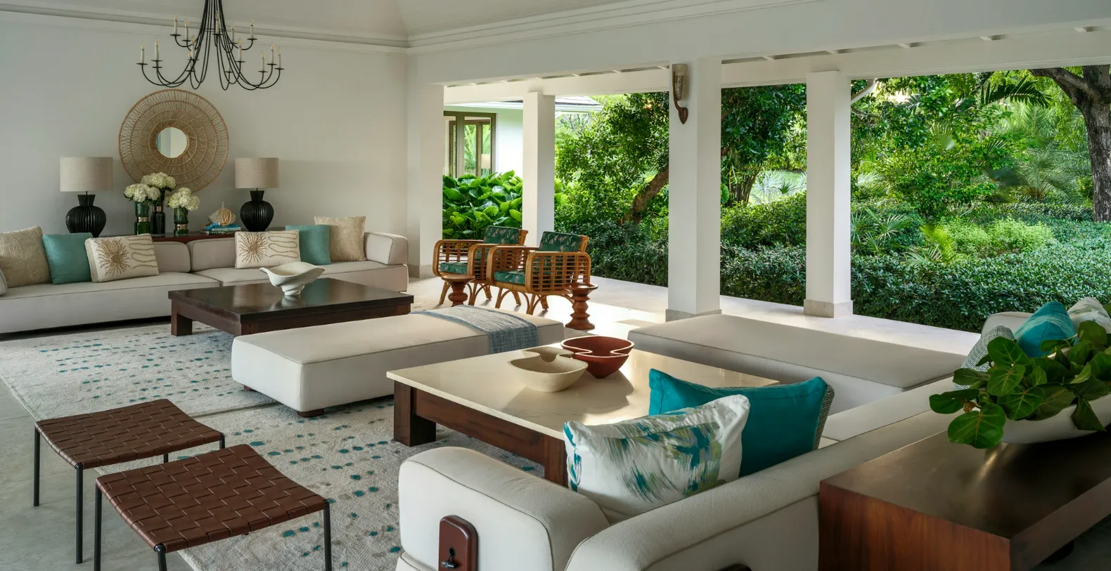Evangeline in Jumby Bay is a luxury vacation villa on a private island, offering expansive living, full-service staff, and refined Caribbean elegance. Set along the unspoiled shoreline of Jumby Bay Island, Evangeline stands as one of the largest and most prestigious private estates within this exclusive private island destination. Located just off the coast of Antigua, Jumby Bay Island is a private, car-free sanctuary known for its powder-soft beaches, turquoise waters, and understated sophistication. Surrounded by tropical gardens and framed by dramatic coastal rock formations, the villa offers a rare sense of seclusion while enjoying direct access to a pristine private beach and panoramic Caribbean Sea views.