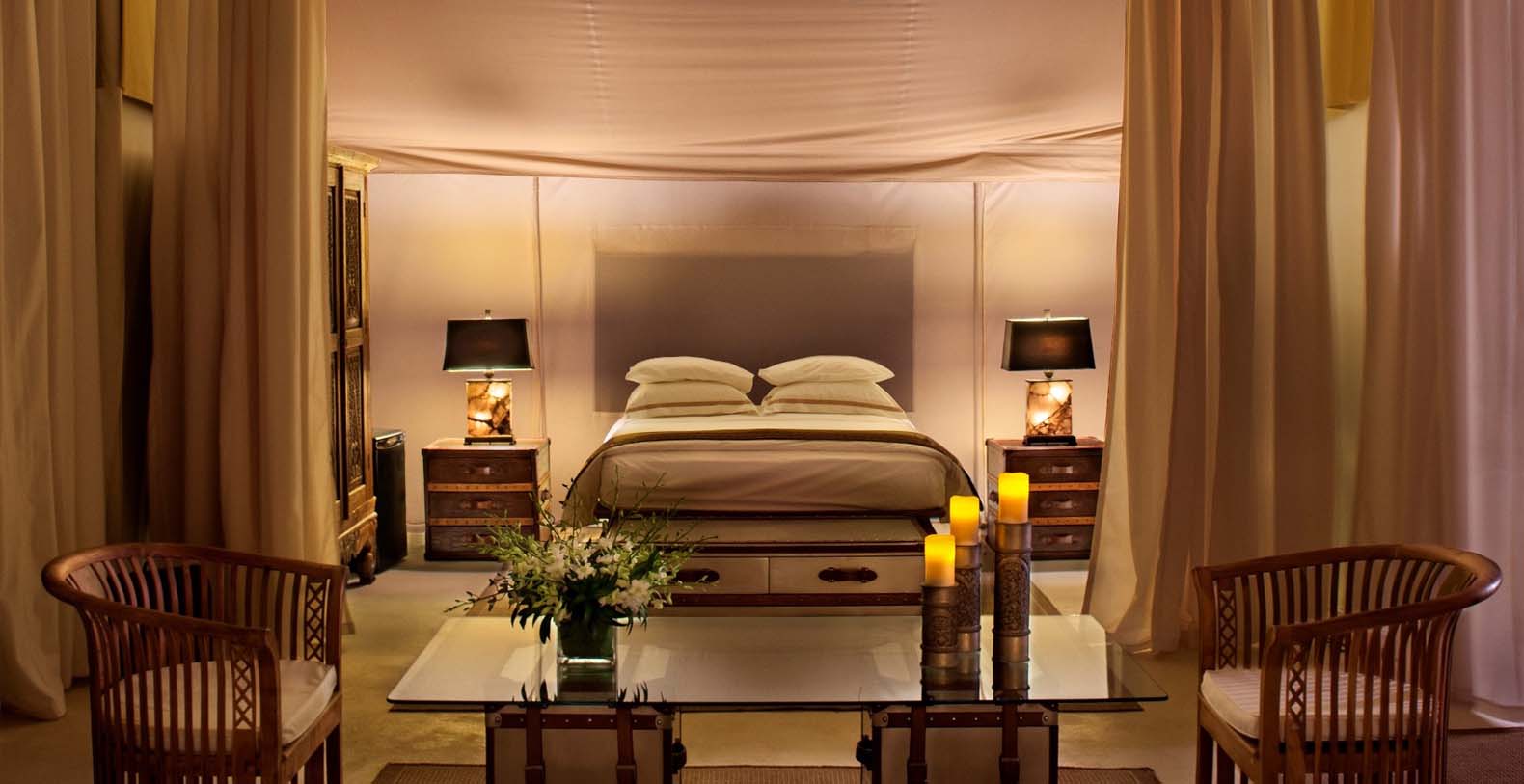 All of Nandana's suites and the tent contain remote controlled flat screen satellite and cable TV, iPod docking stations and stereo. All suites have state of the art computer controlled lighting, air conditioning systems and security systems. The entire property, including all bedrooms and living area rooms, pool, etc. have wireless internet service. The property also includes a gym with state of the art cardio and weight equipment, and a business center with full office facilities (satellite and cable internet, fax, etc.) A private masseuse is on staff offering Asian style massage and other spa services day or evening. The Canopy Suite at Nandana, offers a 2,000-square-foot safari-style tent/bedroom suite with all of the amenities of the other suites, including air conditioning, Internet and a full bathroom.
