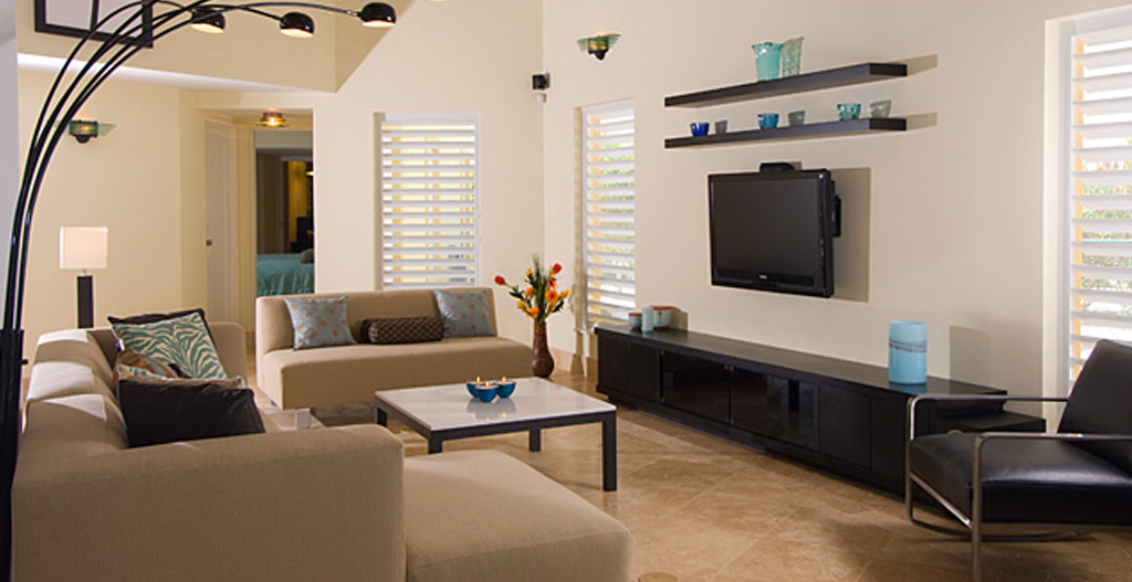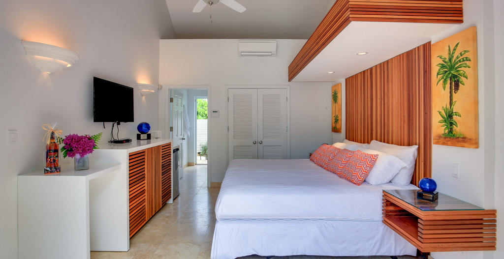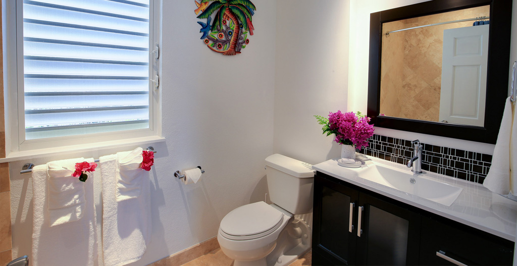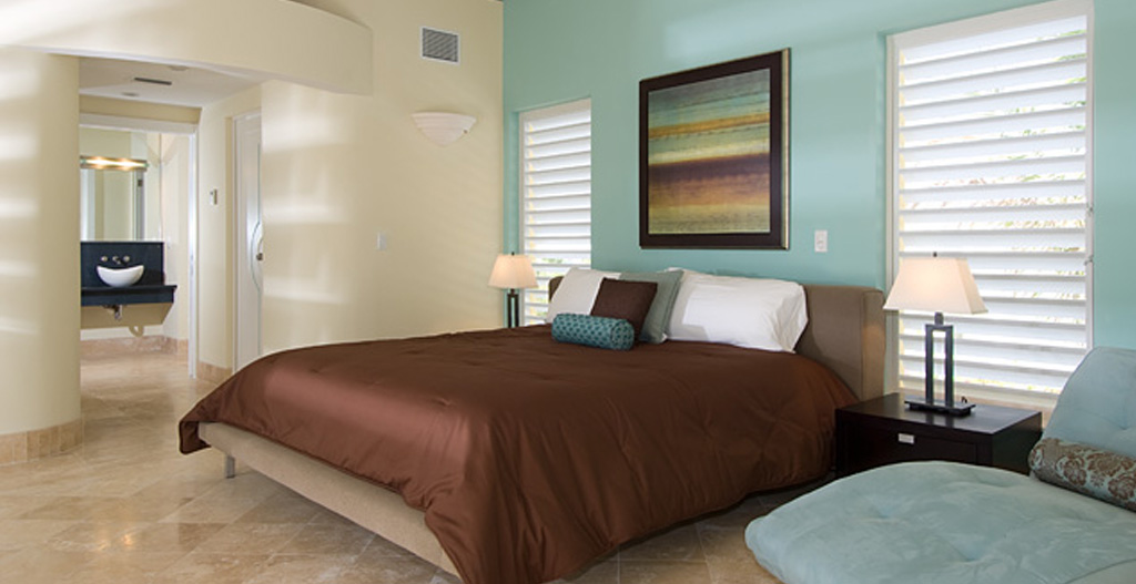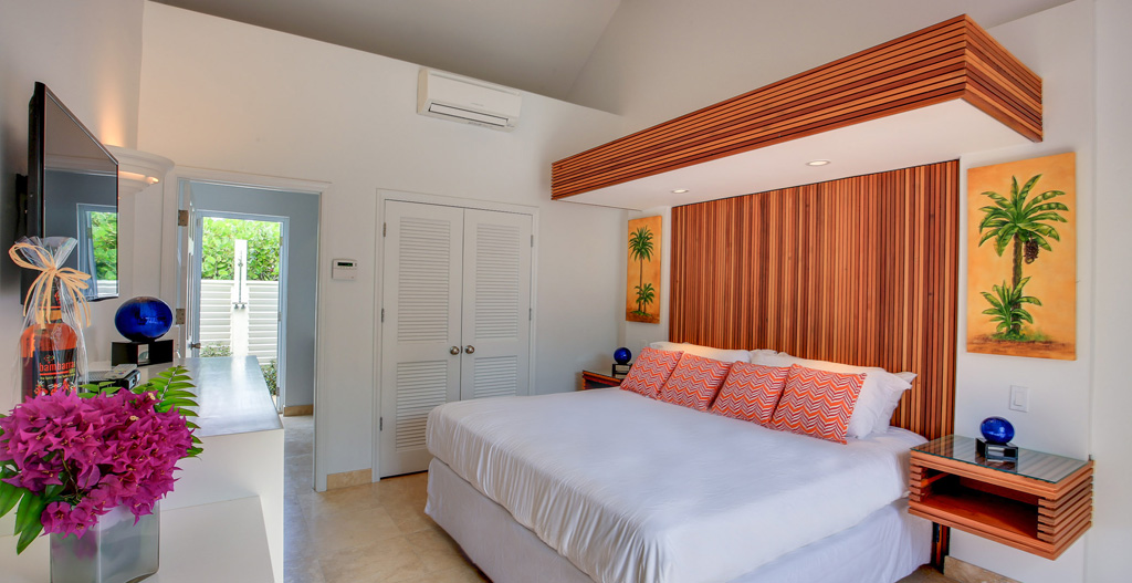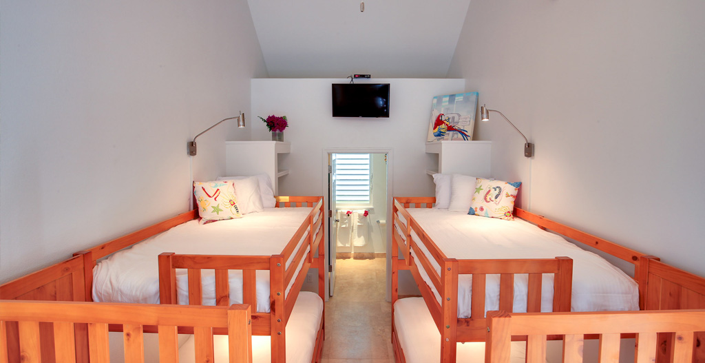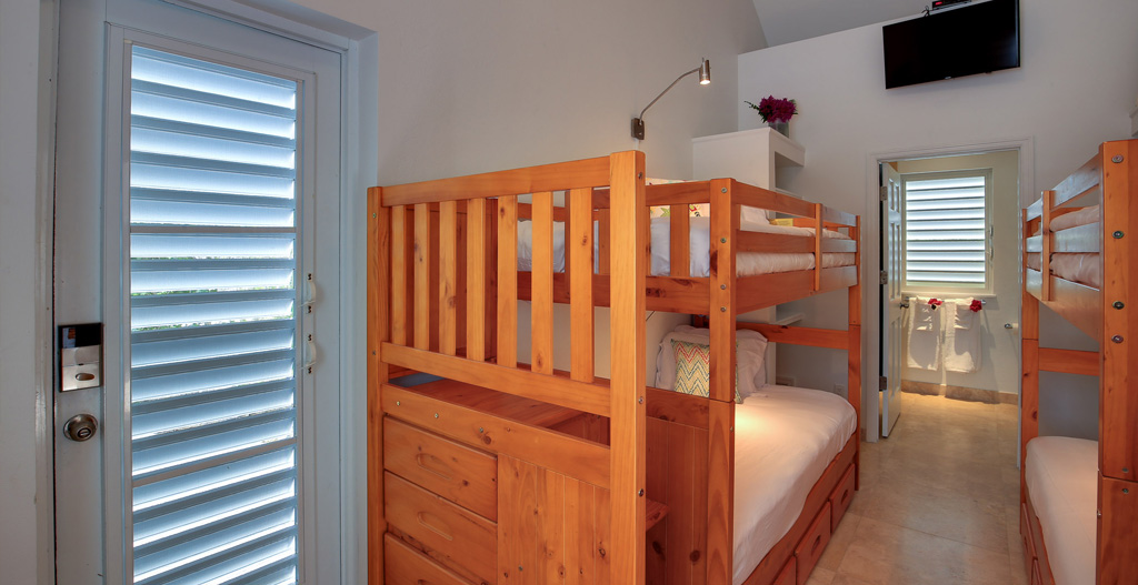 Main house has four identically-sized and luxuriously appointed master bedrooms with ensuite bath and private toilet, and also closets and a safe. Two king bed suites and two suites with extra-long twins that can be set up as kings on request. The Guest House has a luxuriously appointed master bedroom with ensuite bath and private toilet and closet, safe, mini fridge as well as an exterior privacy shower and a patio. The second bedroom offers 2 sets of bunk beds which is suitable for 4 children only and includes flat screen TV with an ensuite bath/shower.