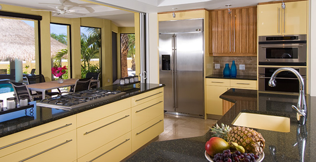Find yourself in the perfect environment to create incredible Caribbean meals (cook your own bonefish catch!) using the gourmet kitchen is crafted from exotic zebra wood and includes wall to wall glass doors. Round it all out with a dishwasher, microwave, oven and warming tray, and the beautiful outdoor wet bar and grill at poolside. Even enjoy your food outside in the screened, pool-side gazebo. Make yourself at home with the included washer and dryer, wireless internet, security system and the televisions with DVD players in each room.