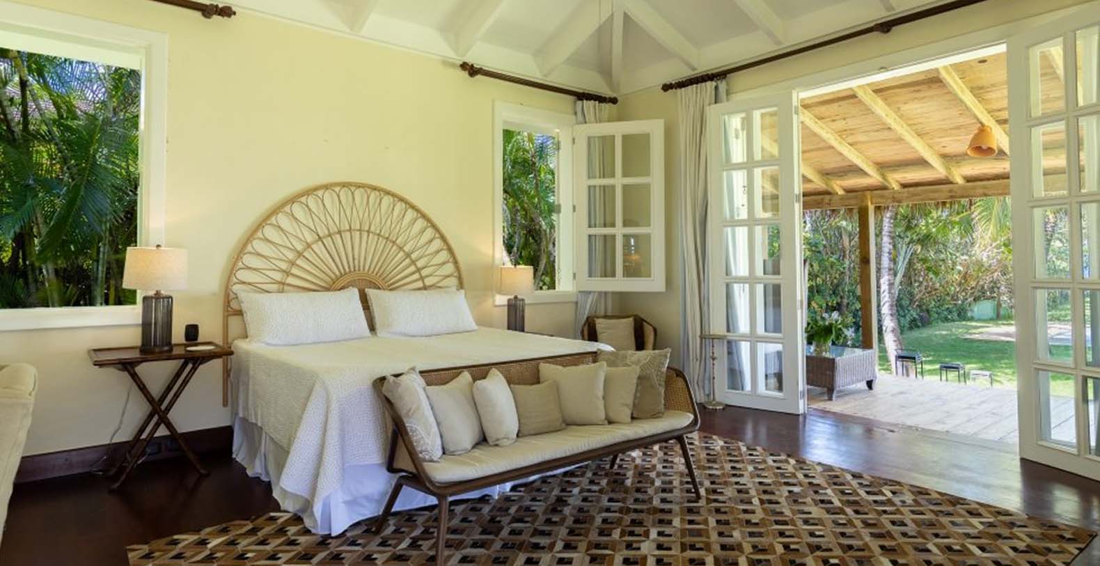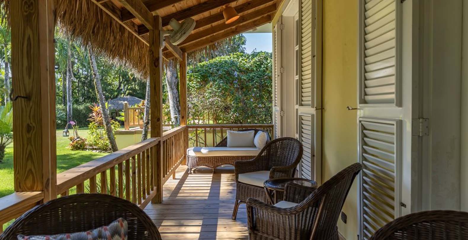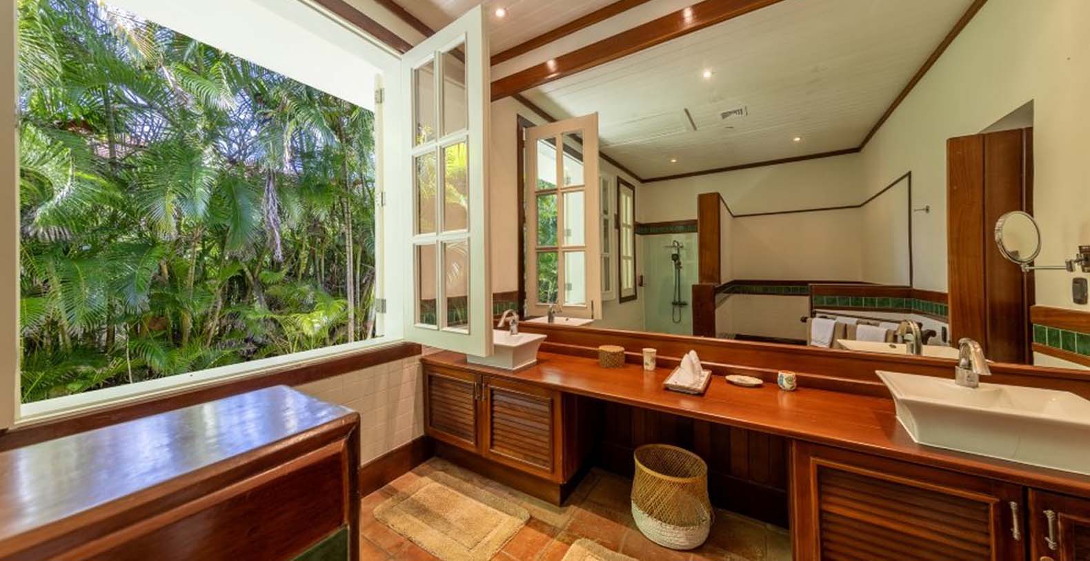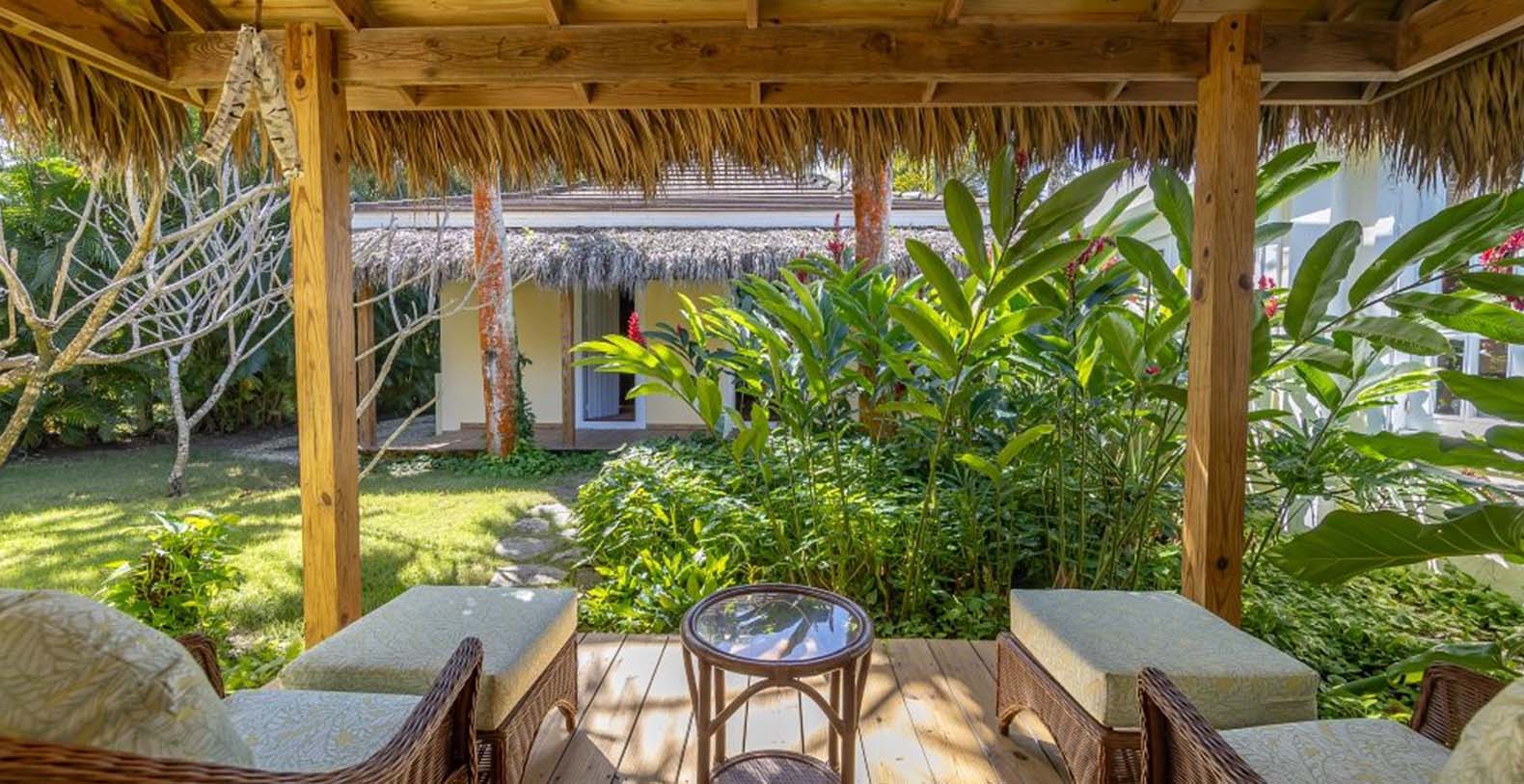 Enjoy the gentle trade winds and breathtaking turquoise ocean views from the spacious wooden veranda, by the pool, or at the beachfront. Casa Las Banderas is superbly decorated with the finest Indonesian, European, and native hardwood furniture A unique wrap-around terrace design ensures that each guest can enjoy their own outdoor space. Step into a world of tropical splendor where fresh breezes and spectacular views await you. The villa’s Caribbean style shines through with louvered windows, vaulted ceilings, and rustic beams, creating a warm and inviting atmosphere. Vibrant colors and a partial-thatched roof terrace exemplify the carefree Caribbean lifestyle you will embrace during your stay.