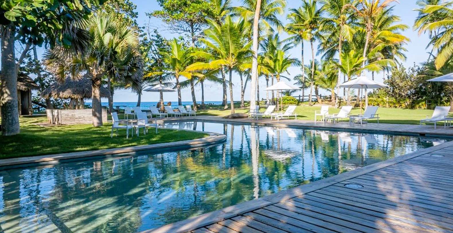 Casa Las Banderas is a beautiful beachfront vacation rental in Cabarete, Dominican Republic in the Caribbean within a resort setting. Experience the ultimate island living at Casa Las Banderas, a 6-bedroom Caribbean beachfront villa located directly in front of a secluded sandy beach. This exquisite property boasts a large private lawn and a sparkling swimming pool, perfect for relaxation and fun. Each of the six well-appointed bedrooms features en-suite bathrooms, providing guests with comfort and privacy ideal for hosting retreats, family gatherings, or small group getaways.