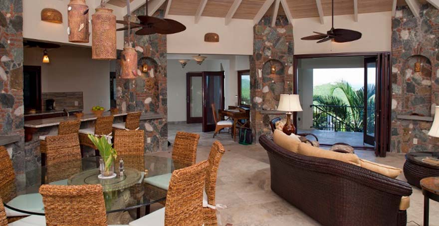 Located in the exclusive enclave of Point Rendezvous on the south shore of St. John, Island Rider is a fully renovated villa that sits upon the open breezy hillside above Klein Bay with sprawling verandas that overlook the gentle curves of Rendezvous Bay and Ditliff Point. This beautifully appointed four bedroom home holds all of the charm of the old St. John with beautiful stone work while providing all of the modern amenities one could expect in a luxury home including a fabulous solar heated pool and spa.