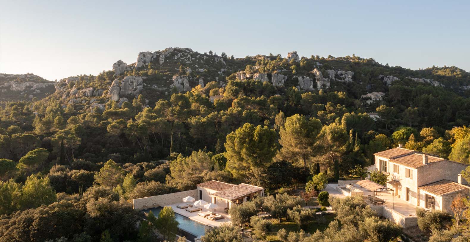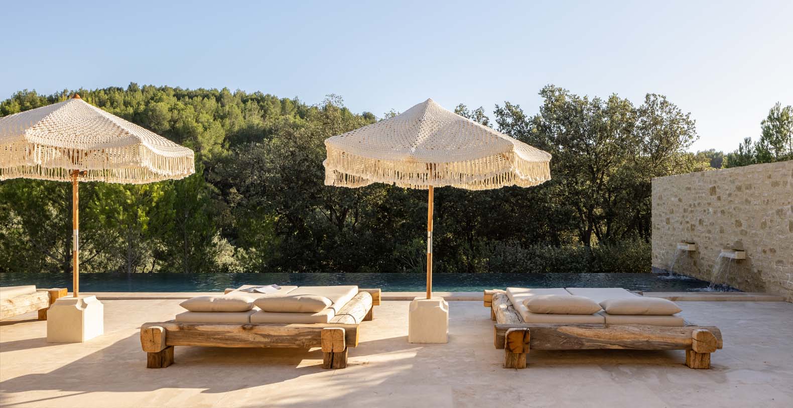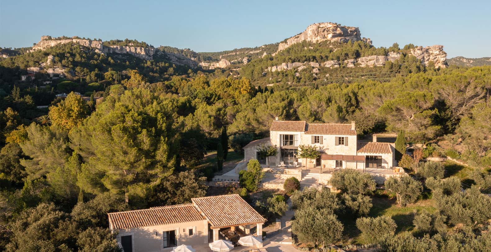 Mas Calabrun is a newly renovated, incredible luxury vacation rental, in the hills of Provence near Les Baux-de-Provence with wonderful views. This lovely designer decorated villa is a one of a kind Jewel with 5 luxuriously decorated suites, incredible care taken to make each one unique and special. From the one of a kind artists touches to the hand carved wood pieces, these rooms all sing of local artistry and amazing soulful creations that can only be expressed when visiting.