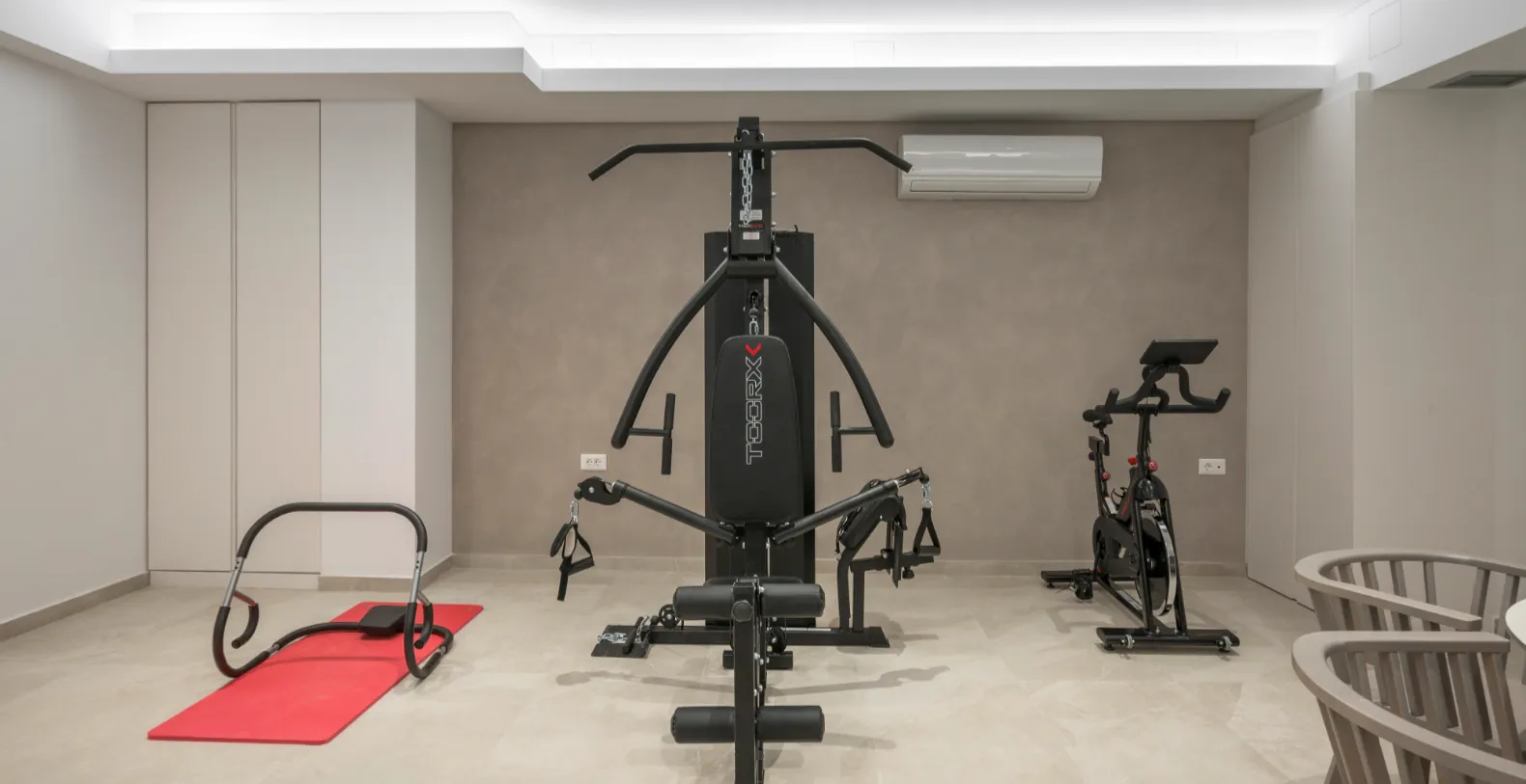 Villa Majestic also offers excellent entertainment and wellness facilities designed to enhance every stay. Guests can enjoy a private playroom and gym equippment with games tables, while the home cinema features a large 60-inch flat-screen television and comfortable seating for relaxed movie nights. Additional amenities include air conditioning throughout the villa and ample private parking, ensuring comfort and convenience throughout the stay.